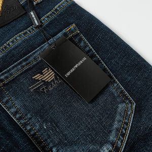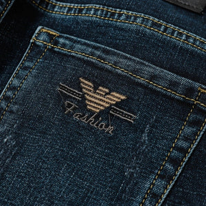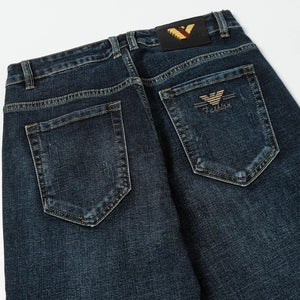 Armani Jeans Back Waist Leather Tag logo Straight Washed Blue Jeans Autumn Winter New Unisex Loose Casual Wide Leg High Waist Pants