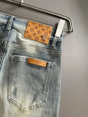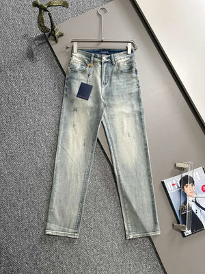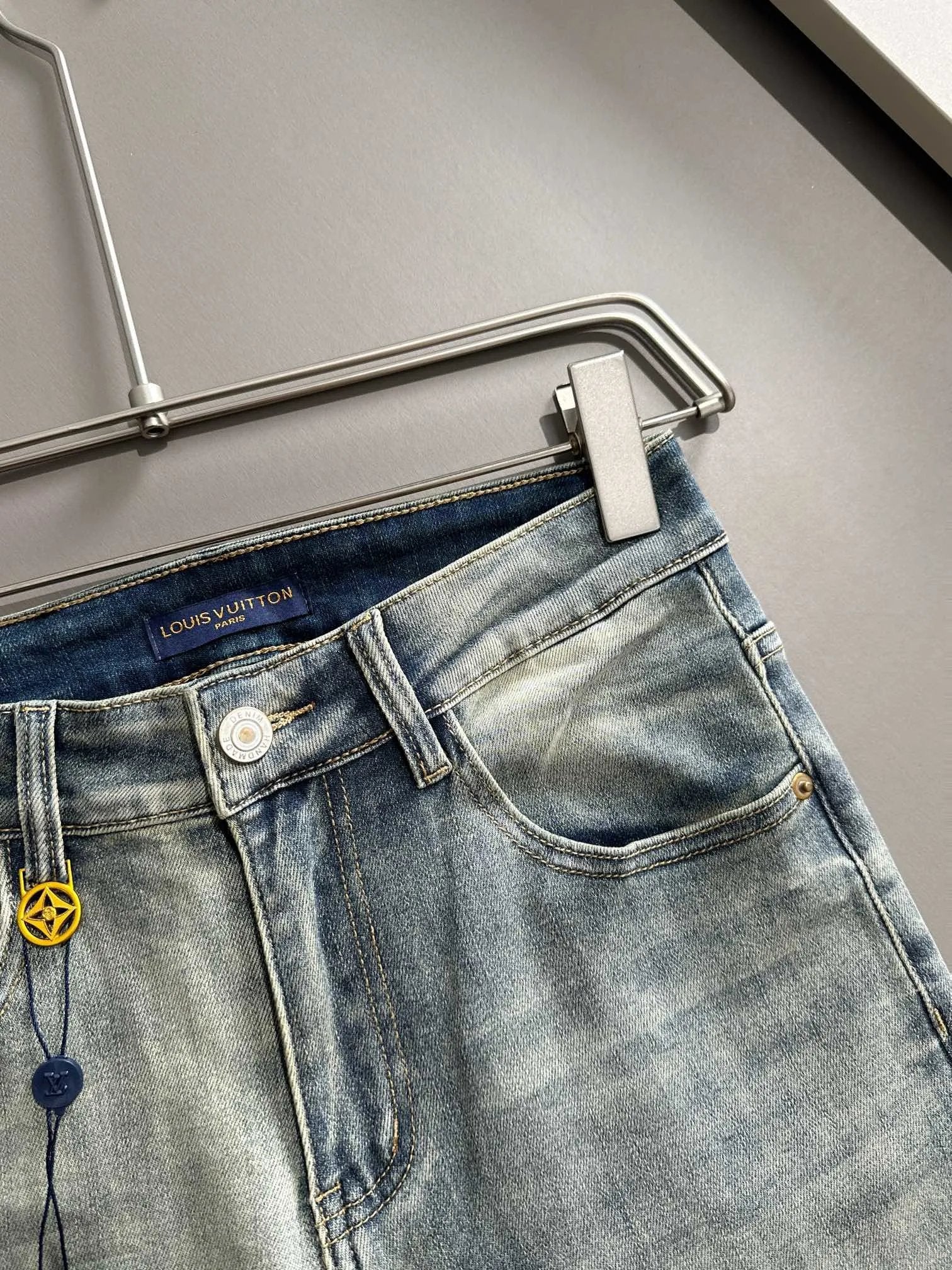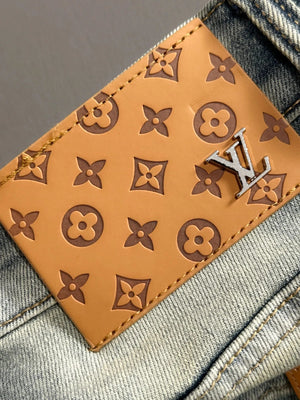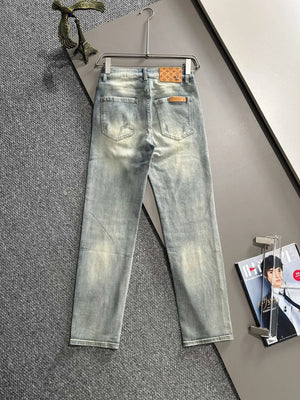 Louis Vuitton LV Jeans Back Waist Leather Tag logo25ss Spring Summer New Straight Leg Jeans Slim Fit High Waist Unisex Loose Long Pants