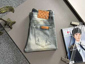 V2025 Four Seasons New Slim Fit Jeans Pants, Made from Imported Japanese Denim Cotton Fabric, Woven Production, Complete with Three Labels, Simple Yet Elegant, Soft and Delicate Comfortable, Versatile and Fashionable! Light Luxury Style, Essential Item for Daily Commuting!