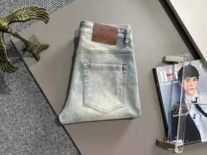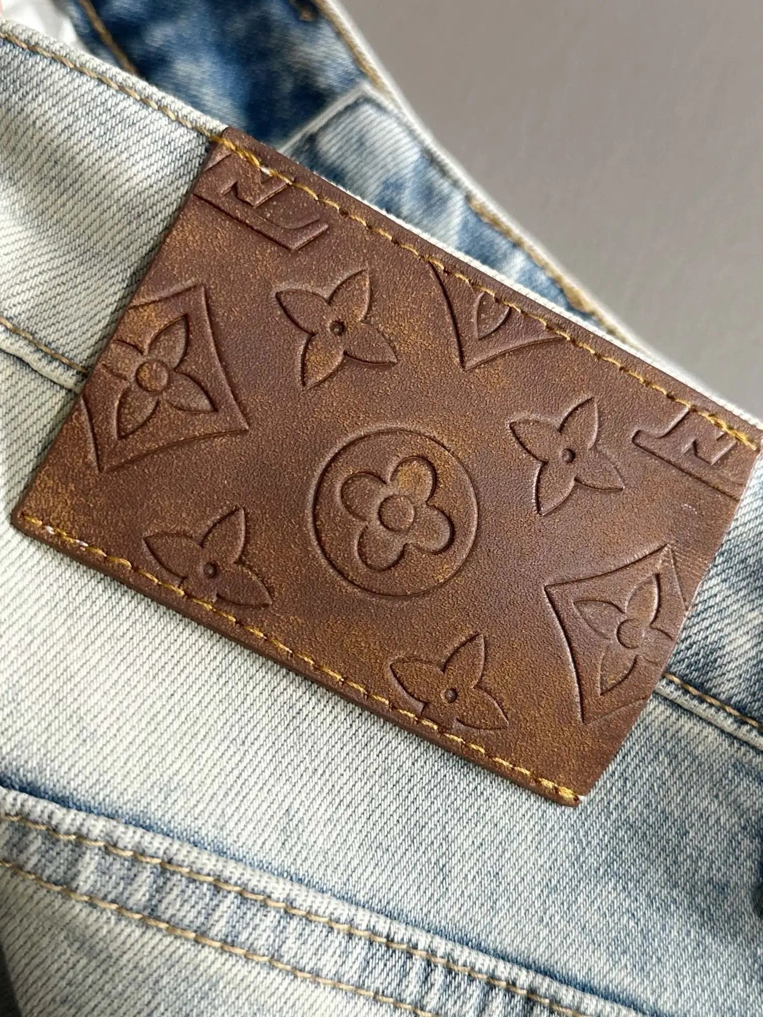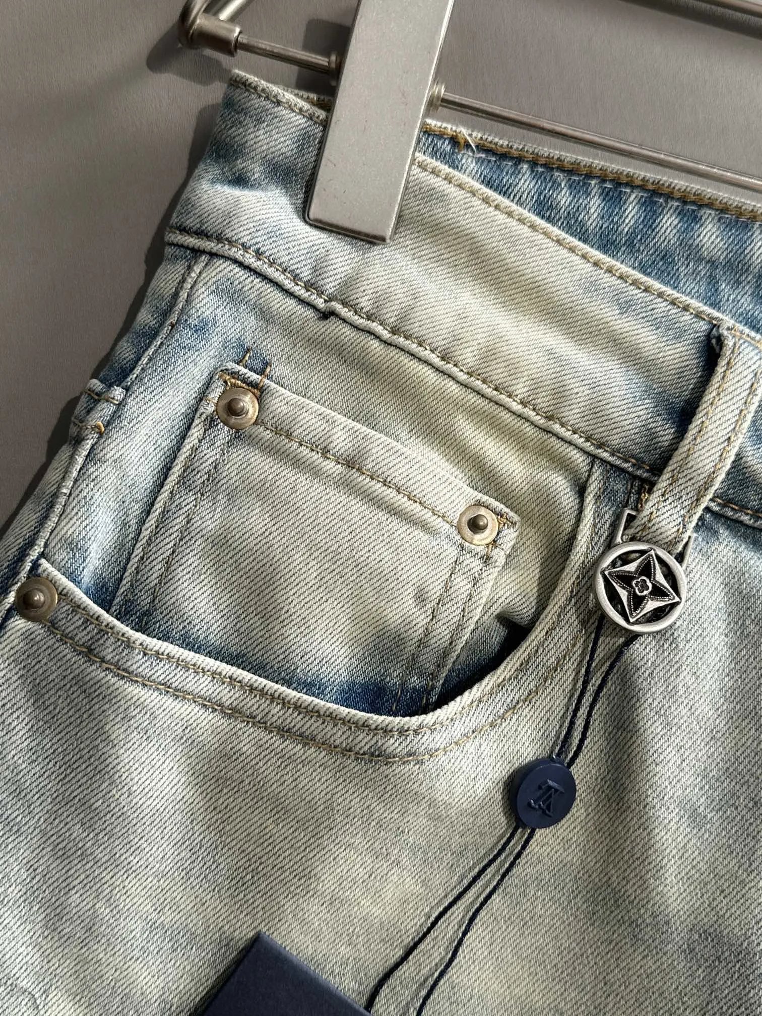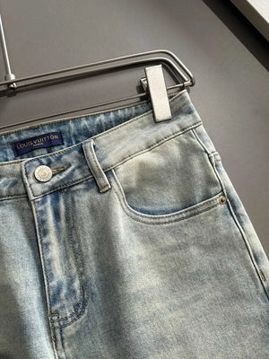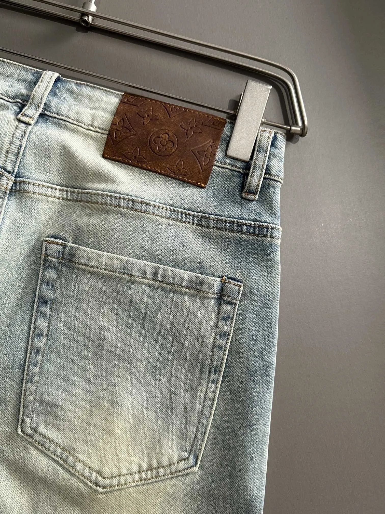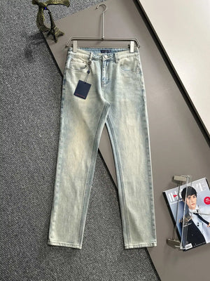 Louis Vuitton LV Jeans Back Waist Leather Tag logo25ss Spring Summer New Straight Slim Fit Jeans High Waist Unisex Loose Fit Long Pants