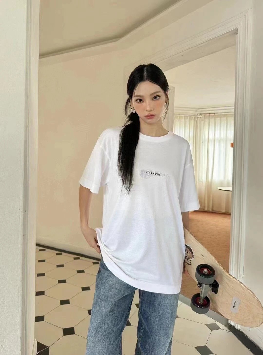 Givenchy T-shirt Back Wings Print logo round Neck Short Sleeve25ss New pure cotton T Unisex T-Shirt OS Loose Fit Base Shirt Top Half Sleeve T-Shirt