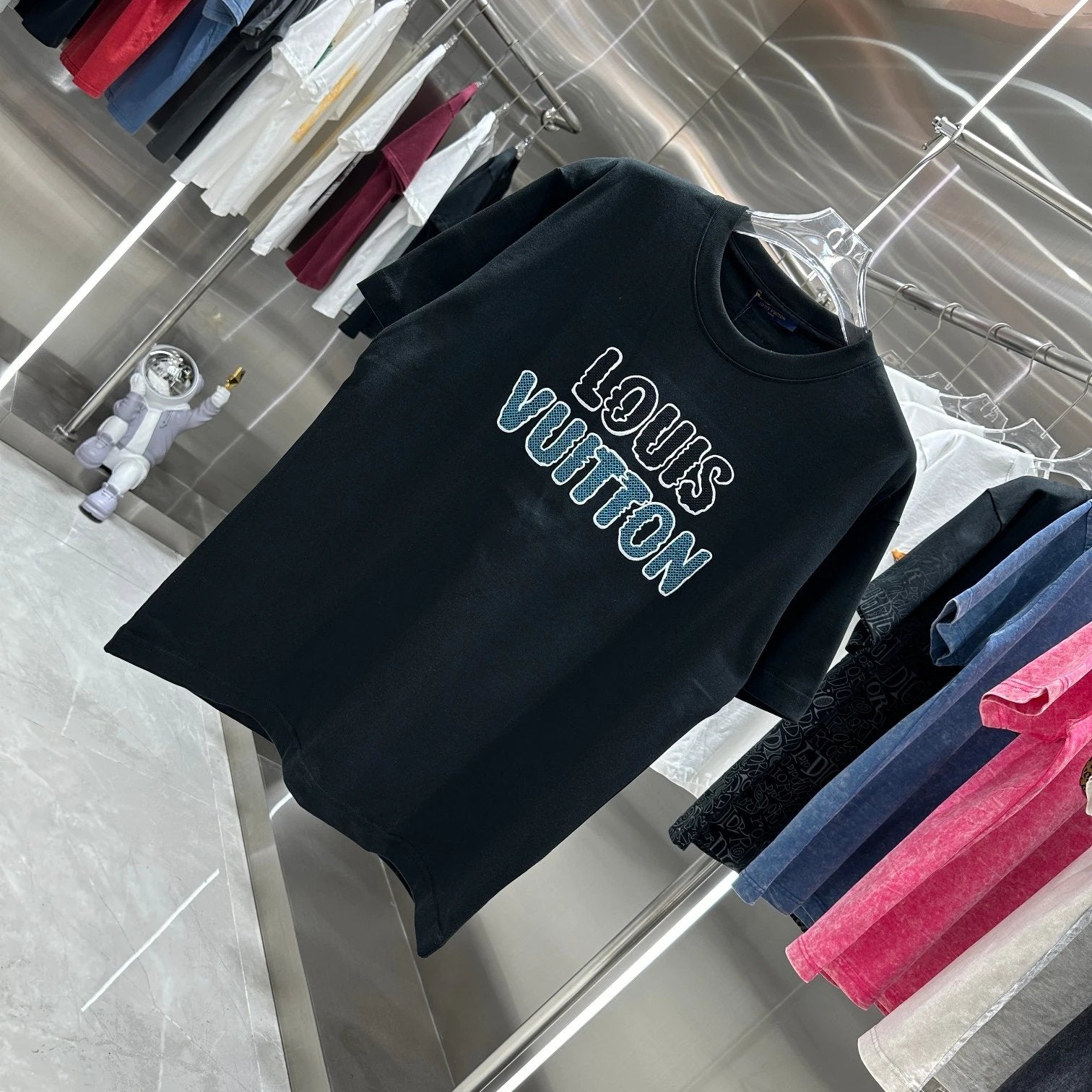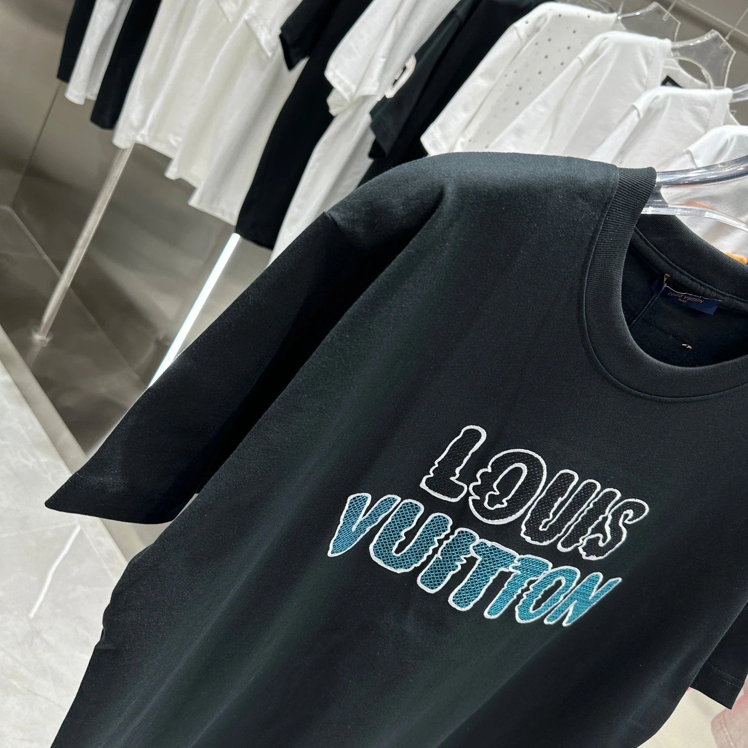 Louis Vuitton LV T-shirt Backside Letter Embroidery logo Printed round Neck Short Sleeve25ss New Pure Cotton Unisex Style T T-shirt OS Loose Fit Base Shirt Top Half Sleeve T-Shirt