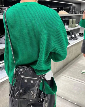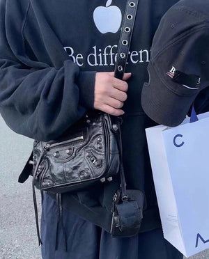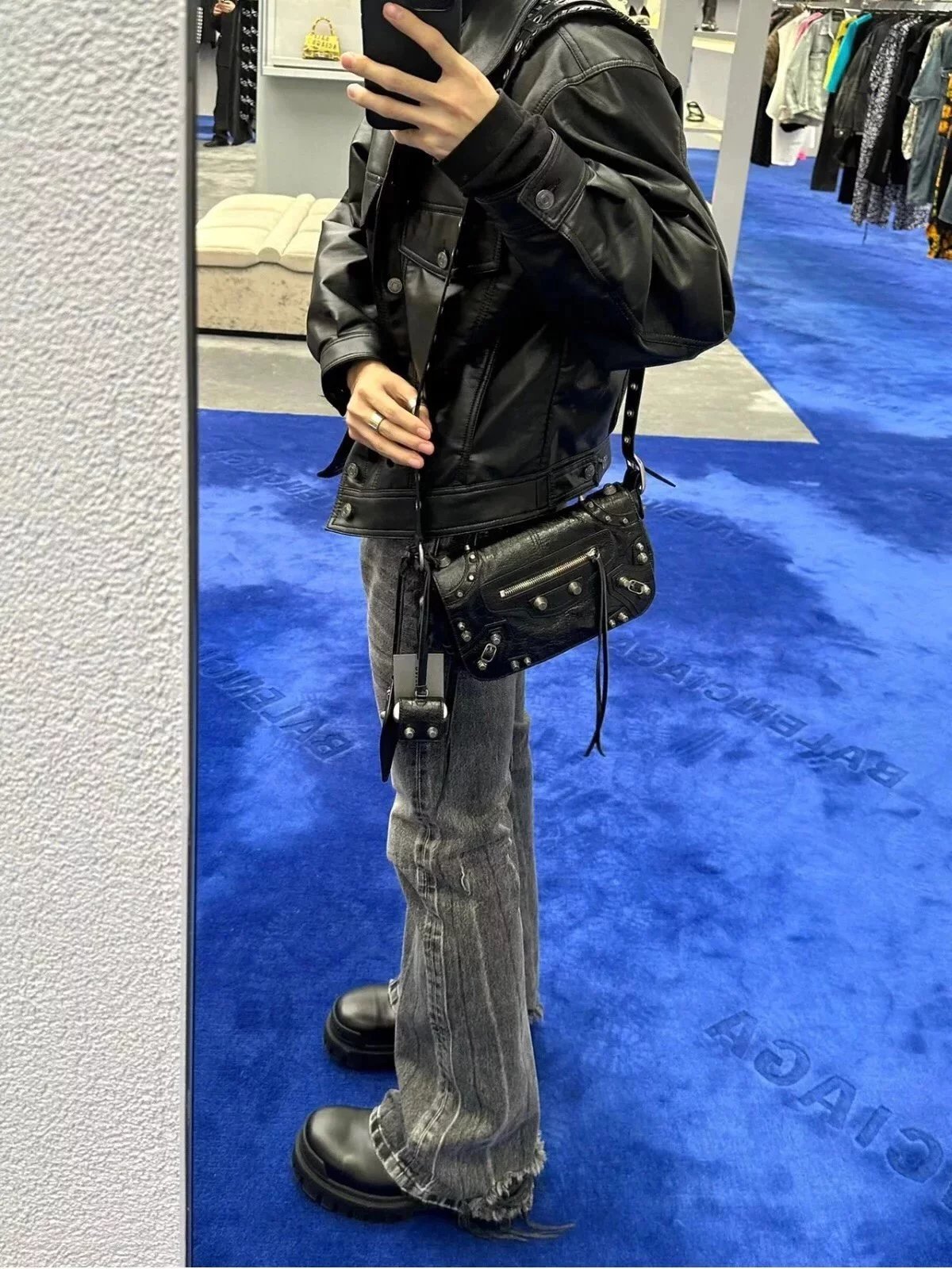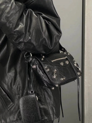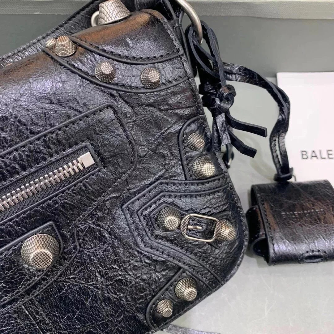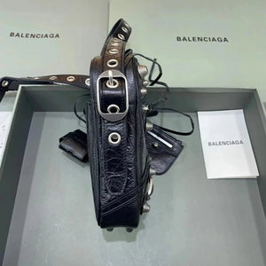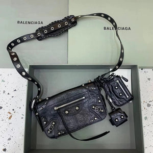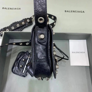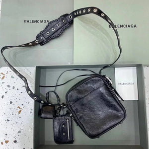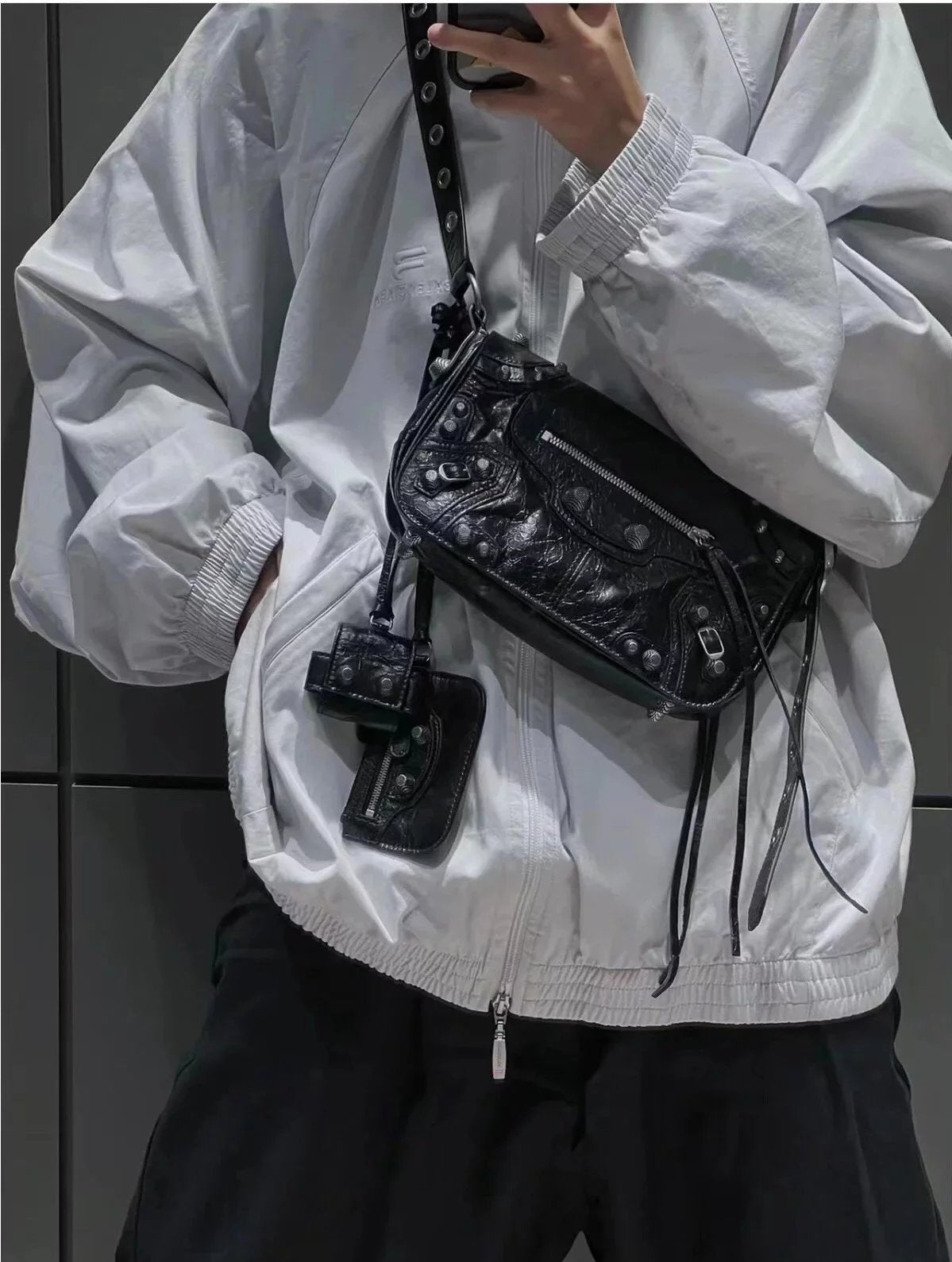 Balenciaga Bag Top version 【Original Leather】New Motorcycle Bag Jay Chou Same Style Hot Motorcycle Bag Men's Small Messenger Bag Rivet Bag Mobile Phone Bag Camera Bag Shoulder Bag Comes with Small Ornaments and Card Bag Men's and Women's Bags Storage Bag