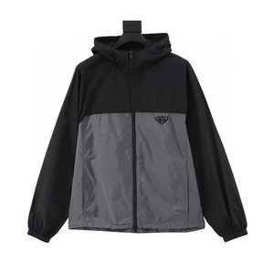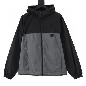 PRADA Jackets Black and Gray Panel Hooded Jacket for Men and Women