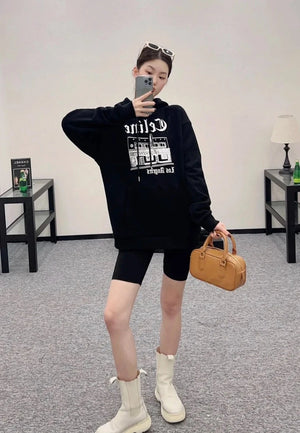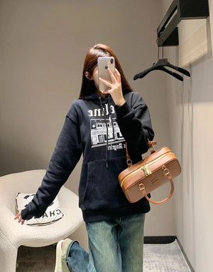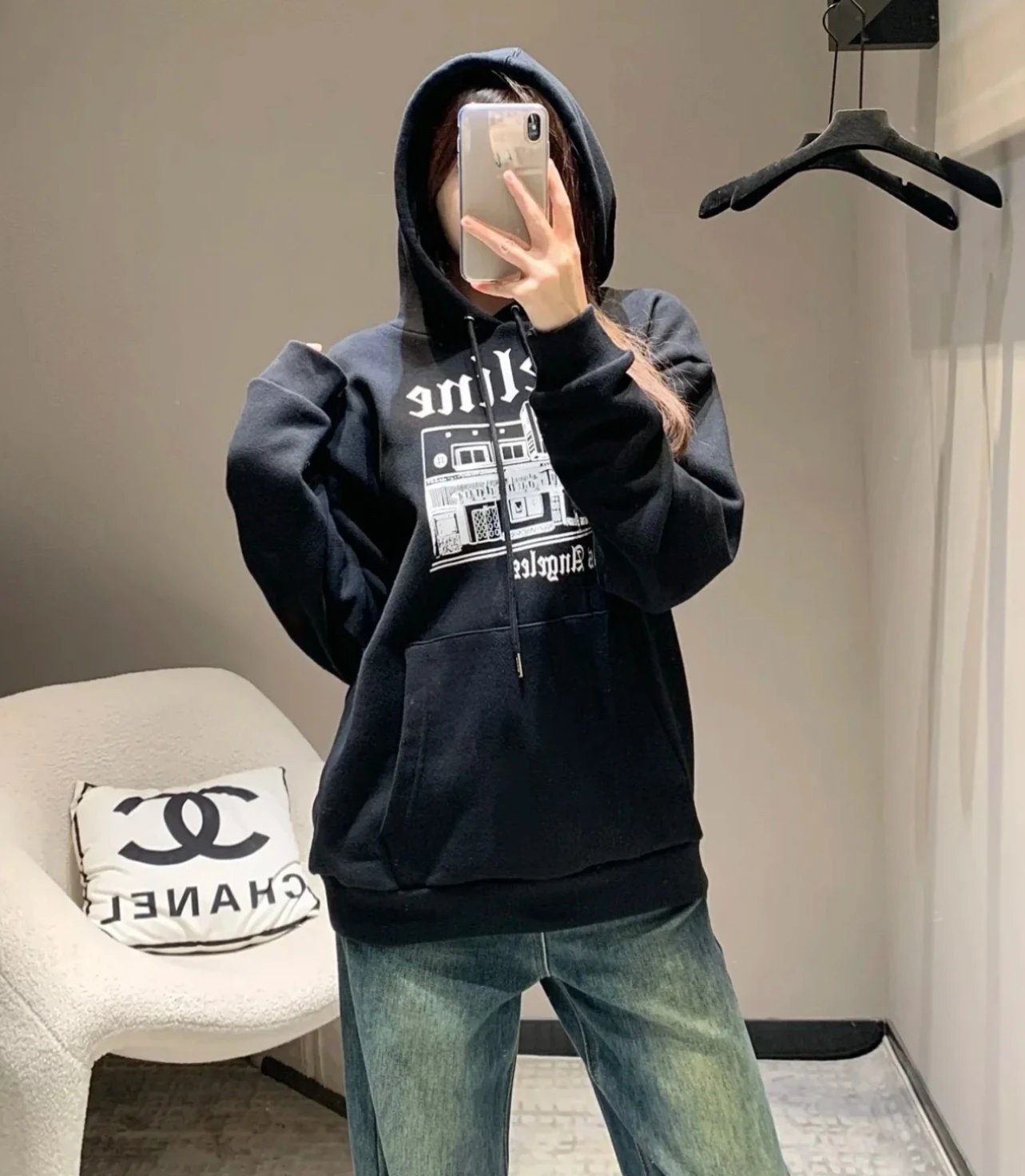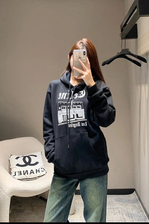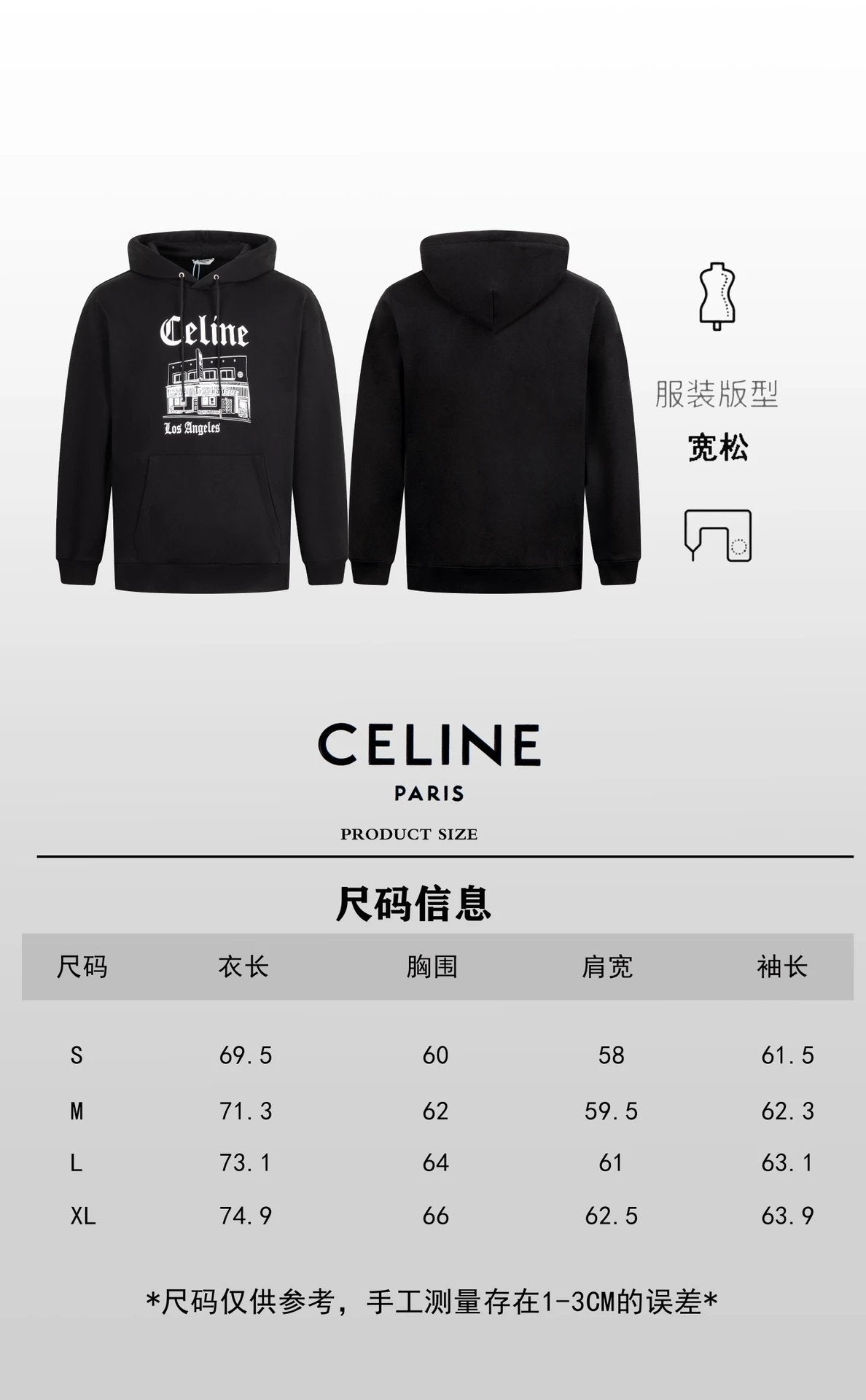Celine Hoodie Black and white chest logo Hooded Sweatshirt Jacket Hoodie Top Unisex Sports Casual OS Loose fit versatile style