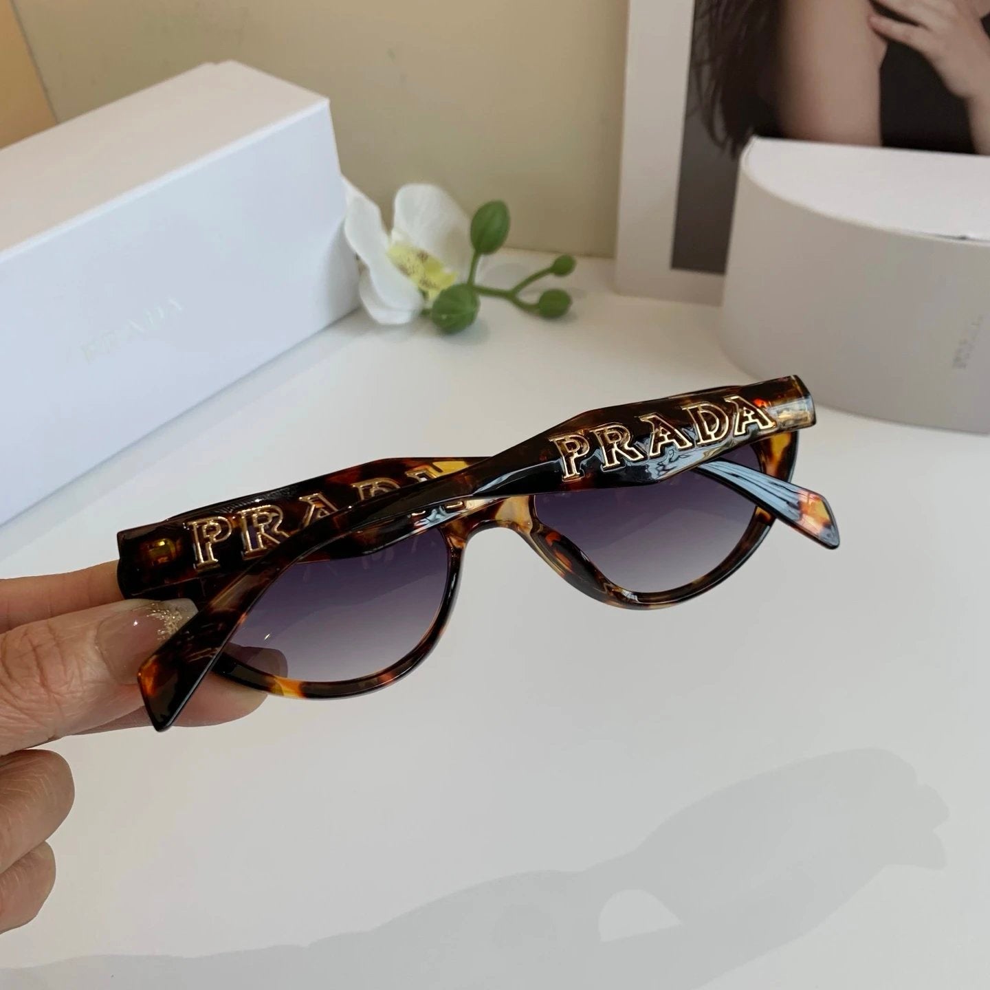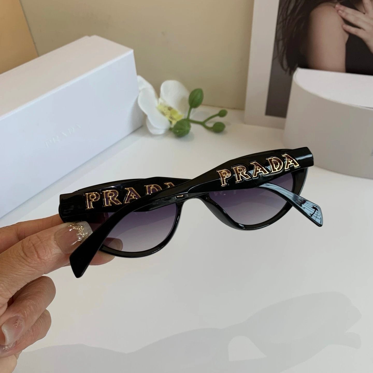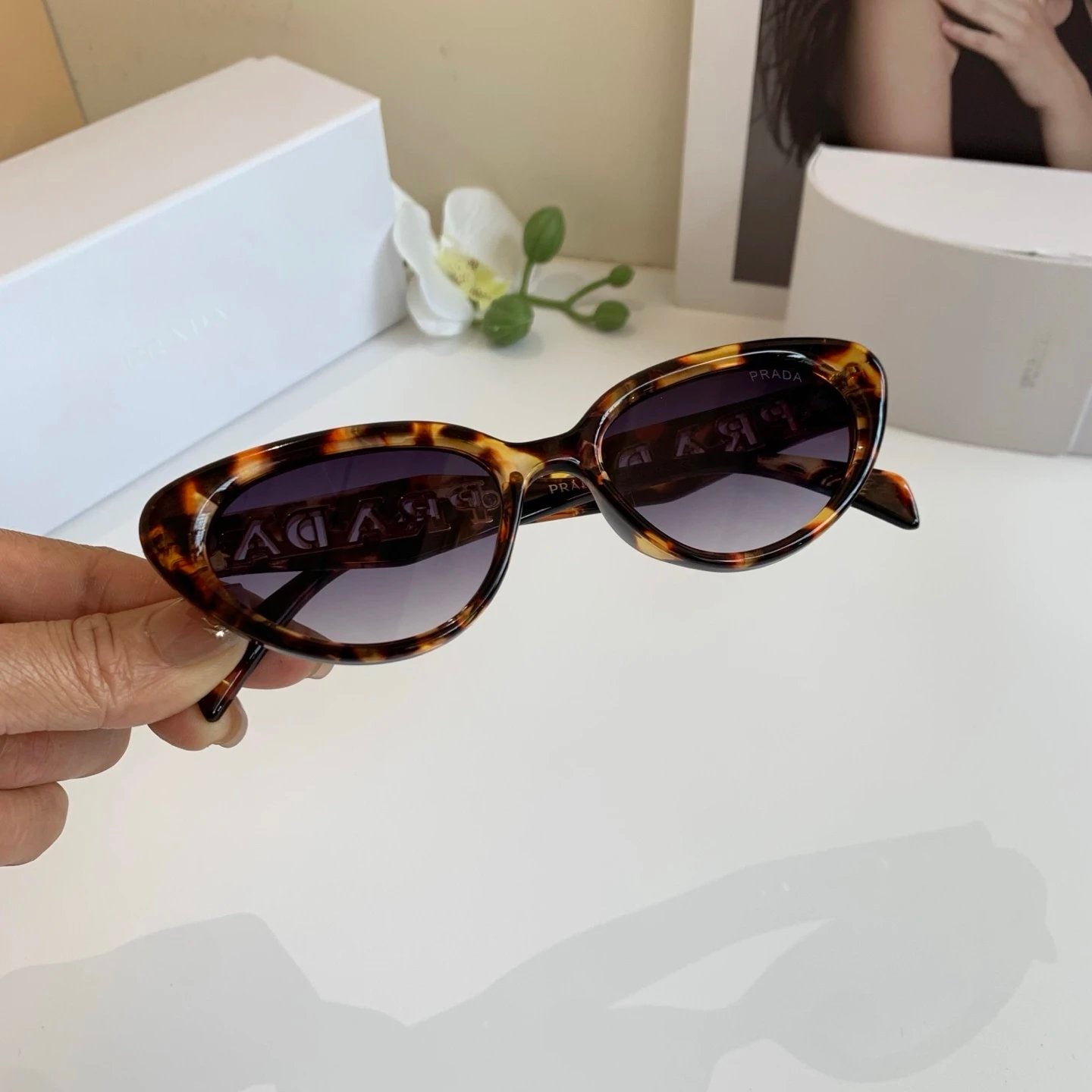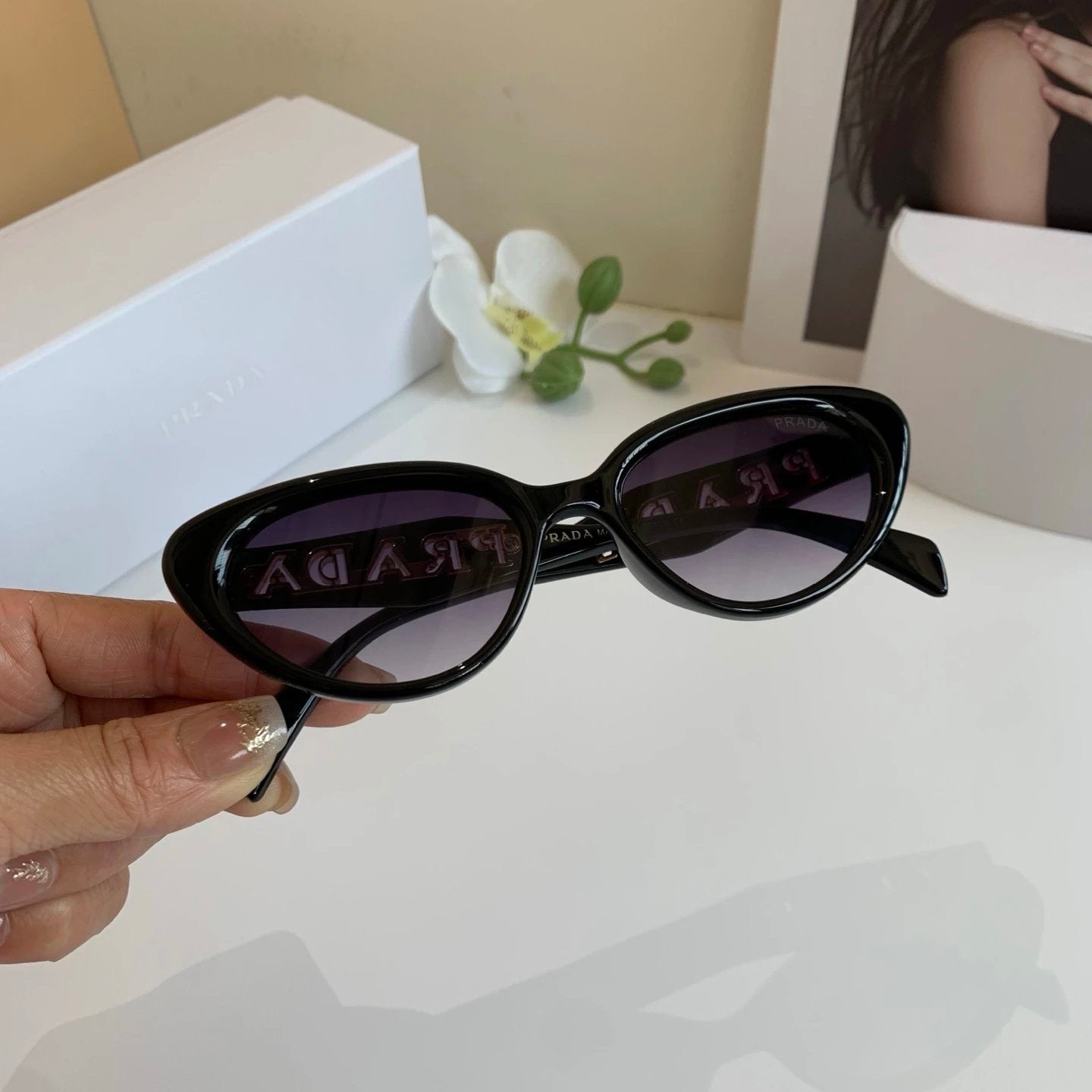 PRADA Sunglasses Cat Eye Sunglasses Frame Slimming No Prescription Driving Beach Fishing Unisex Couple Style UV Protection25ss New Sports Casual Versatile