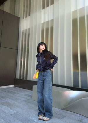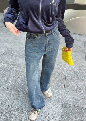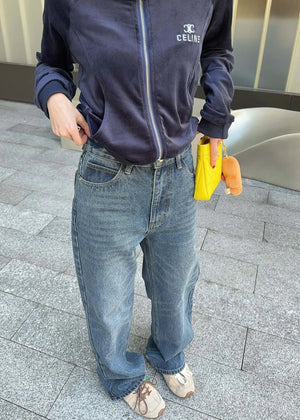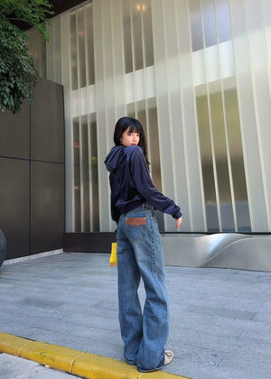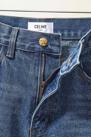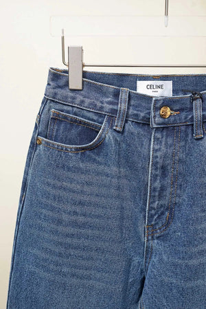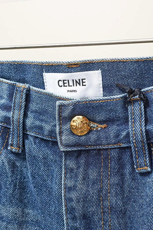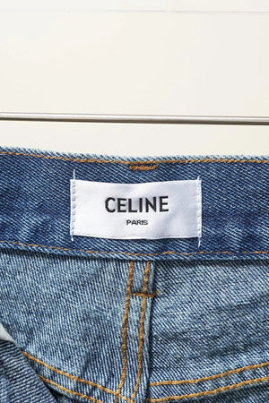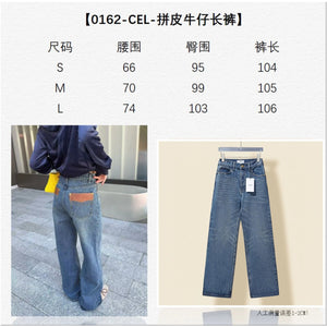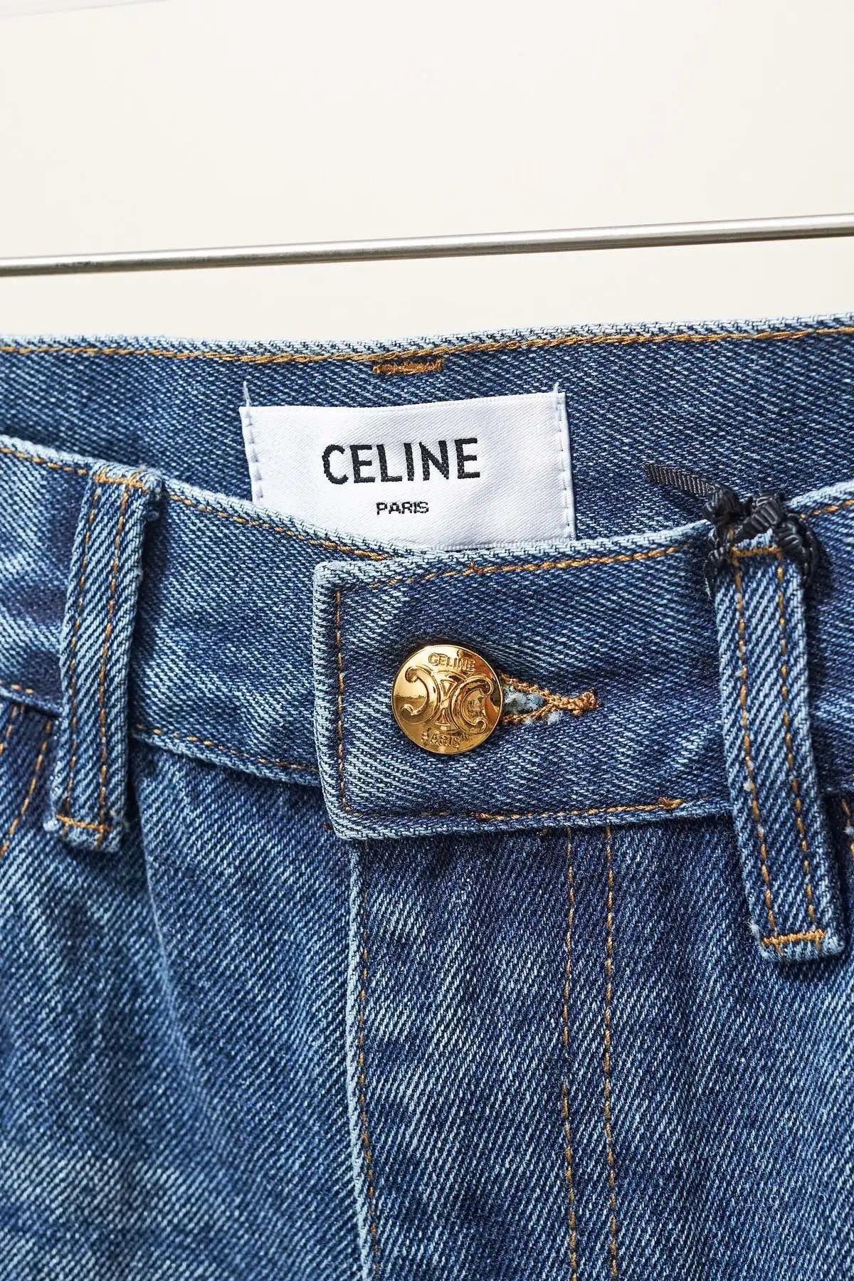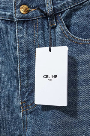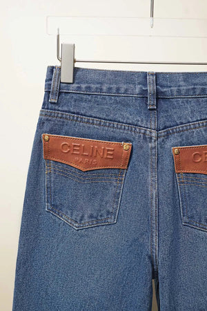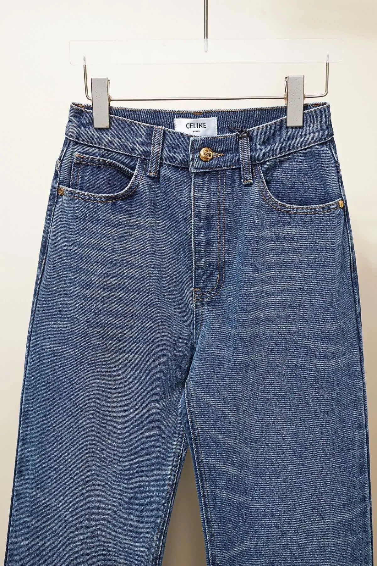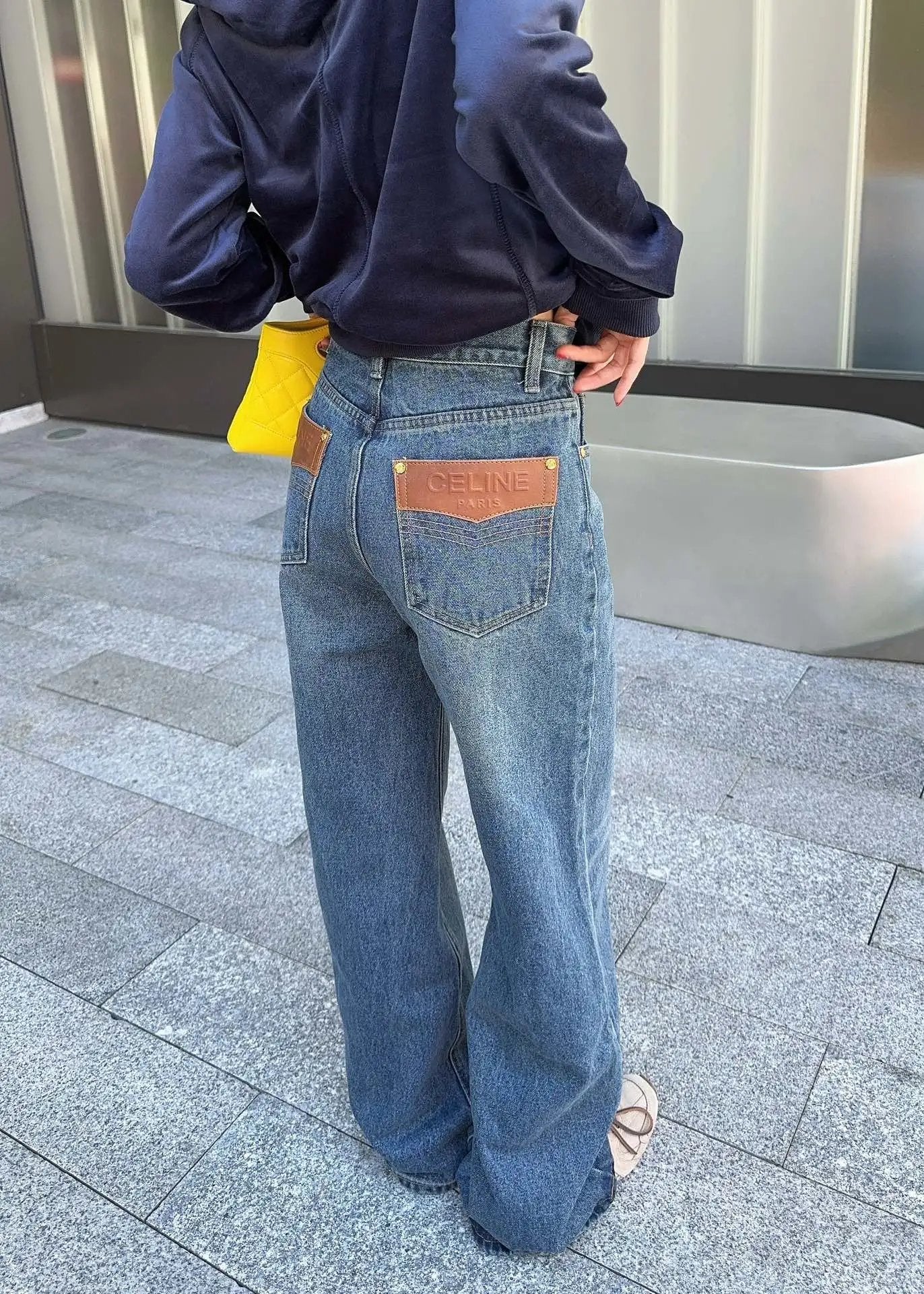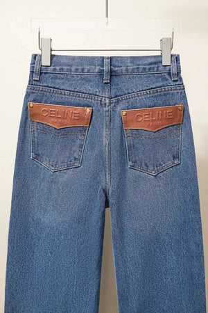 Celine Jeans Cat's Whisker Washed Genuine Leather Back Pocket Denim Pants Women Versatile Casual