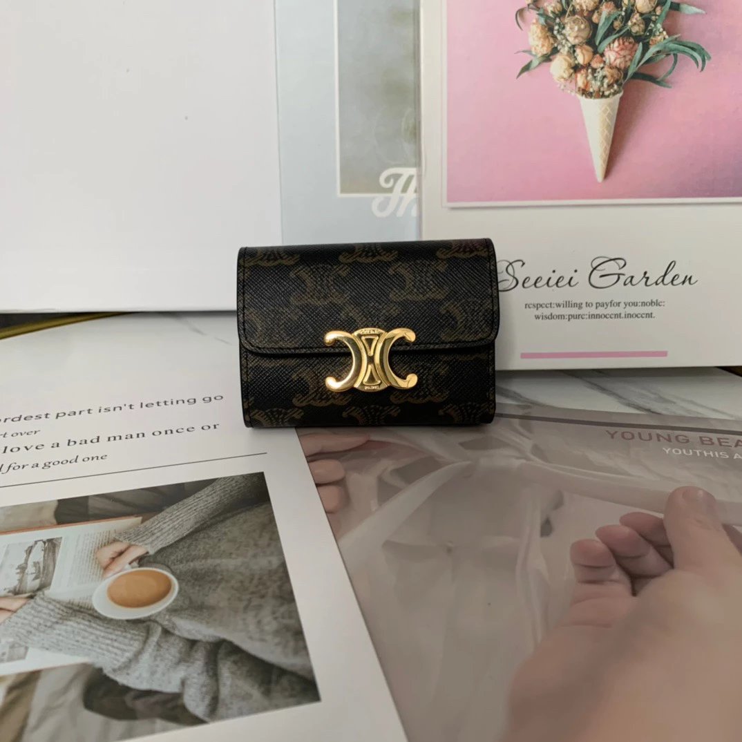 Celine Wallet Top version 【The Highest Version of the Original Factory】Super Two-in-One Small Wallet, Cards, Bills, and Change Can Be Put down4One Card Slot1One Paper Money Bag1One Detachable Zipper Card Holder Arc De Triomphe Two-in-One Wallet Women's Wa