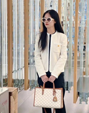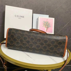 Small Size Celi_ne Triomphe 2022 Spring Horizontal Cabas Tote Handbag All-Match Tote Classic Triumphant Presbyopic Series Hand-Held Not to Pick People, Star Recommended the Fighter in Calfskin PVC Bag, Scratch-Resistant, Lightweight, Large Capacity, Fashionable and Essential Item!