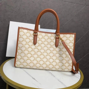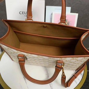 Large Celi_ne Triomphe 2022 Spring Horizontal Cabas Tote Handbag All-Match Tote Classic Triumphant Presbyopic Series Hand-Held Not to Pick People's Blogger Mingxing Highly Recommended the Fighter in Calfskin PVC Bag, Scratch-Resistant, Lightweight, Large Capacity, Fashionable and Essential Item!