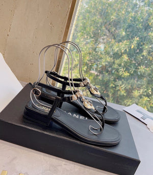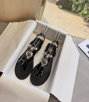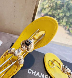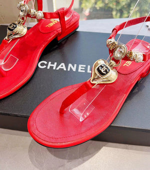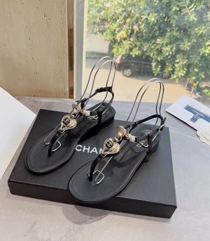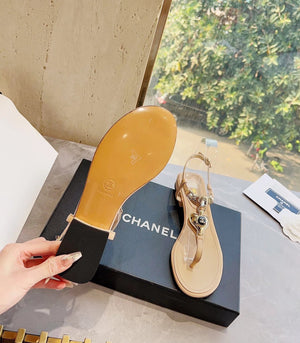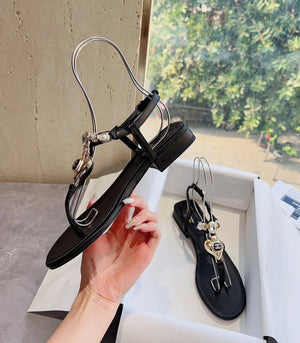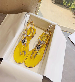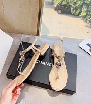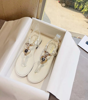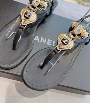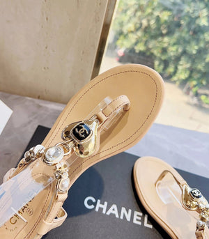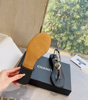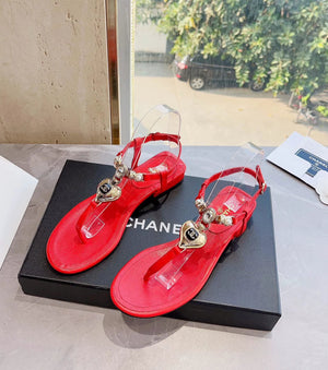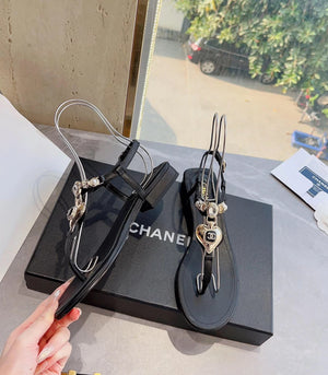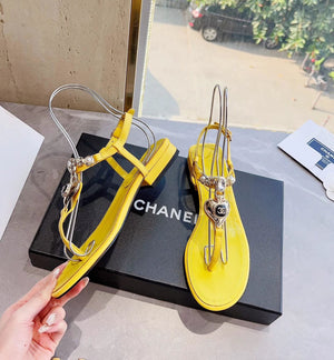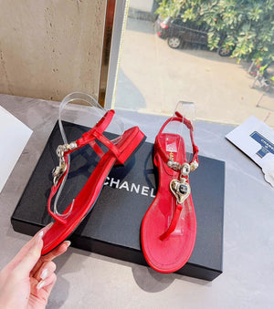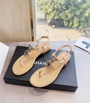 **Chane Classic Style 23ss Spring and Summer New Holiday Love Gem T Shape Sandals