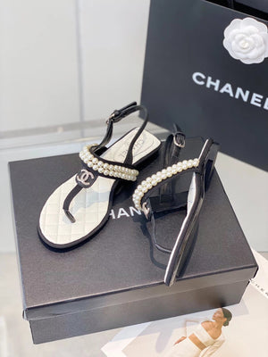 Chanel Shoes Early Spring New Flip-Flops Pearl Sandals! Latest Version,Sandals with Lasting Charm~The Original Development Supports Any Market Comparison.,The So-Called Smooth Lines Naturally Restore the Original Appearance The Upper Foot Is Super Comfort