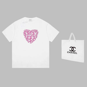Classic Style Short-Sleeved T-shirt (Can Be Equipped with Handbag➕5) High Quality Chane Chanel Family 520 Limited Love❤Letter Short-Sleeved Top, Pure Cotton Soft Fabric, Color-Dyed Fabric, Ultra-Fine Plain Net Printing Crafts, Full of Fashion, Dyed Pure Cotton Fabric, Loose Design, Three-Standard Complete, Same Style for Men and Women.