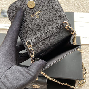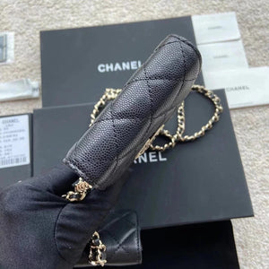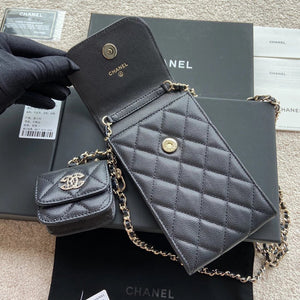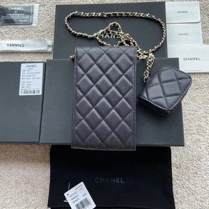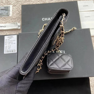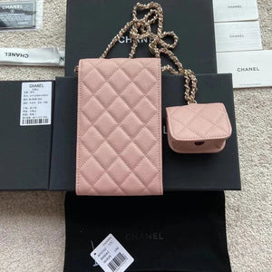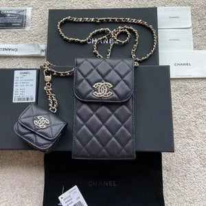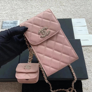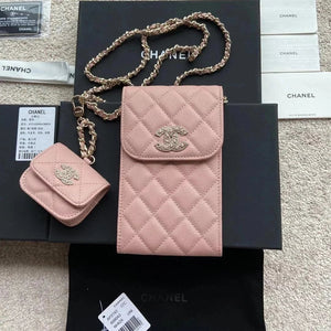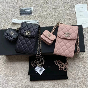 Chanel Wallet Top version Two-in-One Mobile Phone Bag Earphone Bag Pairs CC Home Wallet Shoulder Messenger Bag Chain Bag Women's Bag Imported Italian Particle Cowhide Size:w10×h16.5×2cm Color:Black Pink Fine Ball Pattern Diamond-Embedded Hardware Mother a