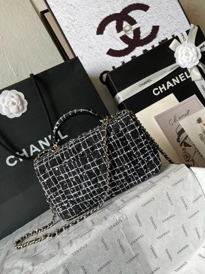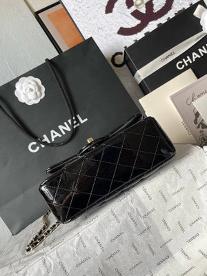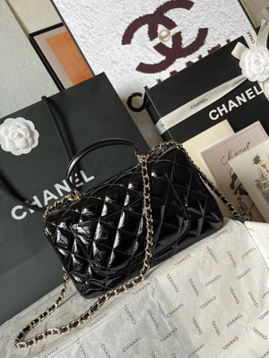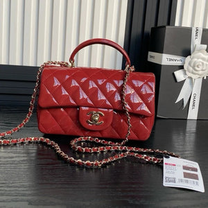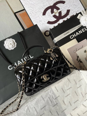 Chanel Women's Bag Top version 【Original Leather with the Highest Quality Version】Small24K Patent Leather Handle Box Bag Cosmetic Bag AS2431Handle CF Bag Doll24KCFminihandle Handle Bag Sheepskin Women's Bag24P Woolen Sequins Flap Bag Mobile Phone Bag Port