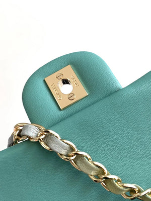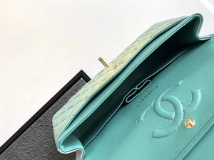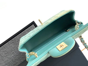 Small Size 20cm‼️Chanel 24ss Gentle Light Color Series | So Beautiful and Sweet, Elegant Light Greenish Blue ~ Lively Color Matching? ~ They Are like a Bright Color in a Dream ~ Sending out Pleasant Color Charm? Both Soft Texture and Delicate Chain Are Super Nice ~ Mini Size: 20cm