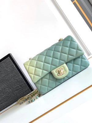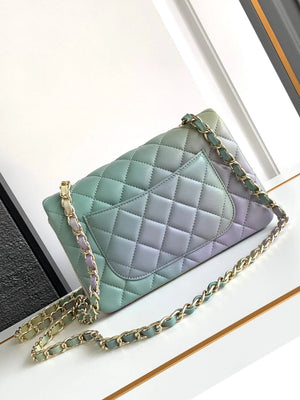 Chanel Women's Bag Top version 【Original Quality】24S Gradient Color Mermaid CF Bag Series Bag New Sheepskin1116Large mini Gradient Green Classic Custom Spanish Imported Original Sheepskin All-Steel Hardware Lining with Lambskin Feel Soft Version Super Awe
