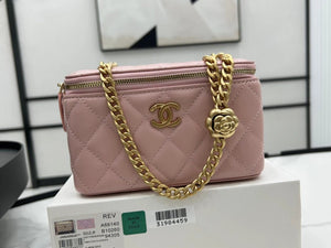 Chanel Women's Bag Top version 【**Original Sheepskin】23s Spring and Summer New Camellia Adjustable Buckle Small Box Bag C Best-Selling Camellia mini Box Bag Cosmetic Bag Inner Mirror Makeup New Small Waste Bag mini Bag Long Box Bag Home Camellia Bag Women