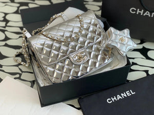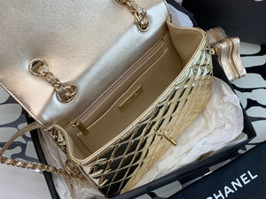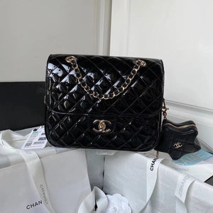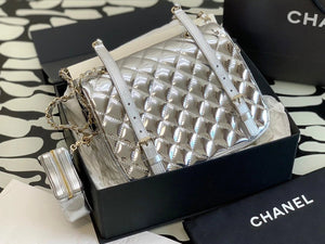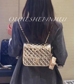 Chanel Women's Bag Top version 【Super Original Leather Highest Version】1/24C Early Spring New Five-Pointed Star Backpack Original Laser Bag Patent Leather Backpack Shoulder Messenger Handbag Women's Chain Backpack Gold XINGX Schoolbag Silver XINGX Backpac