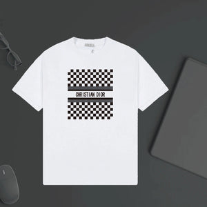 Dior T-shirt Checkerboard Pattern Print on the Chest logo round Neck Short Sleeve25ss New pure cotton T Unisex T-Shirt OS Drop Shoulder Loose Fit Base Shirt Top T-Shirt Short Sleeve
