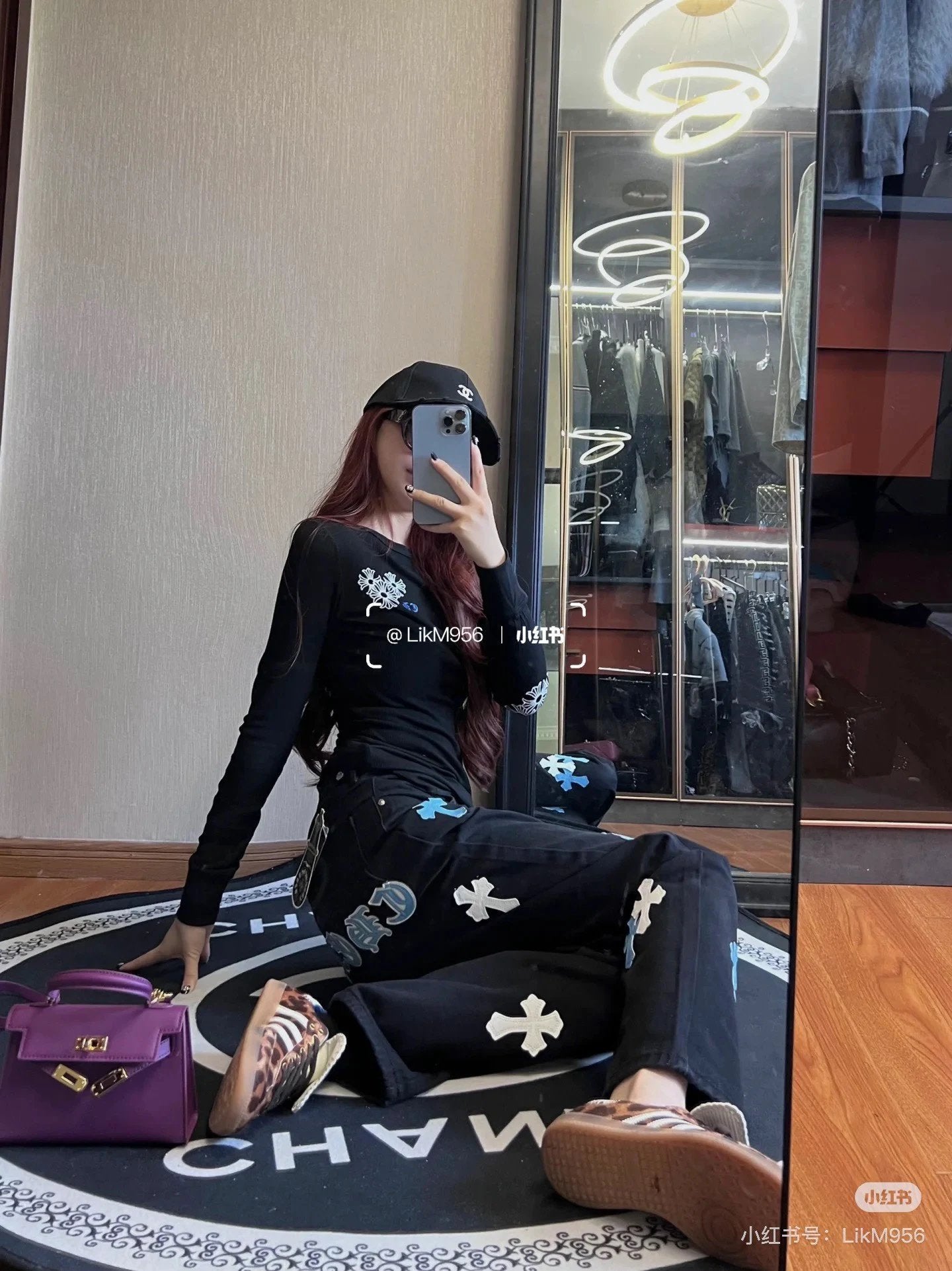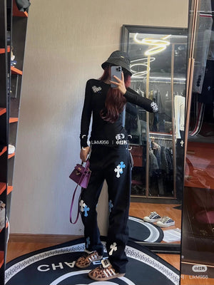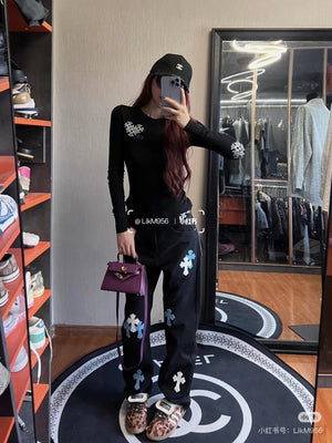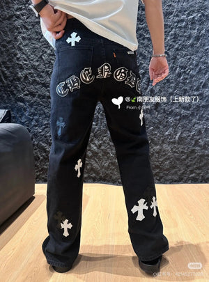 Chrome Hearts Jeans Chengdu City Exclusive Jeans Autumn and Winter New Men's and Women's Same Long Pants Loose Casual Wide Leg High Waist