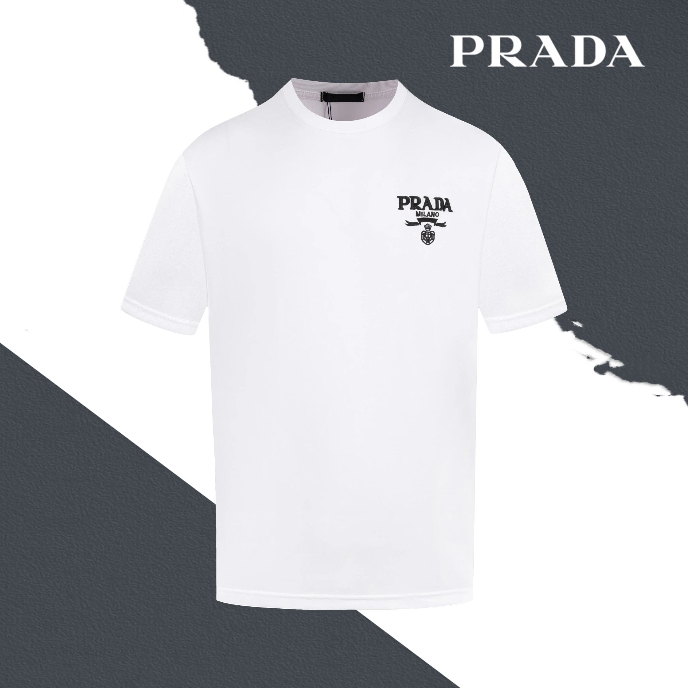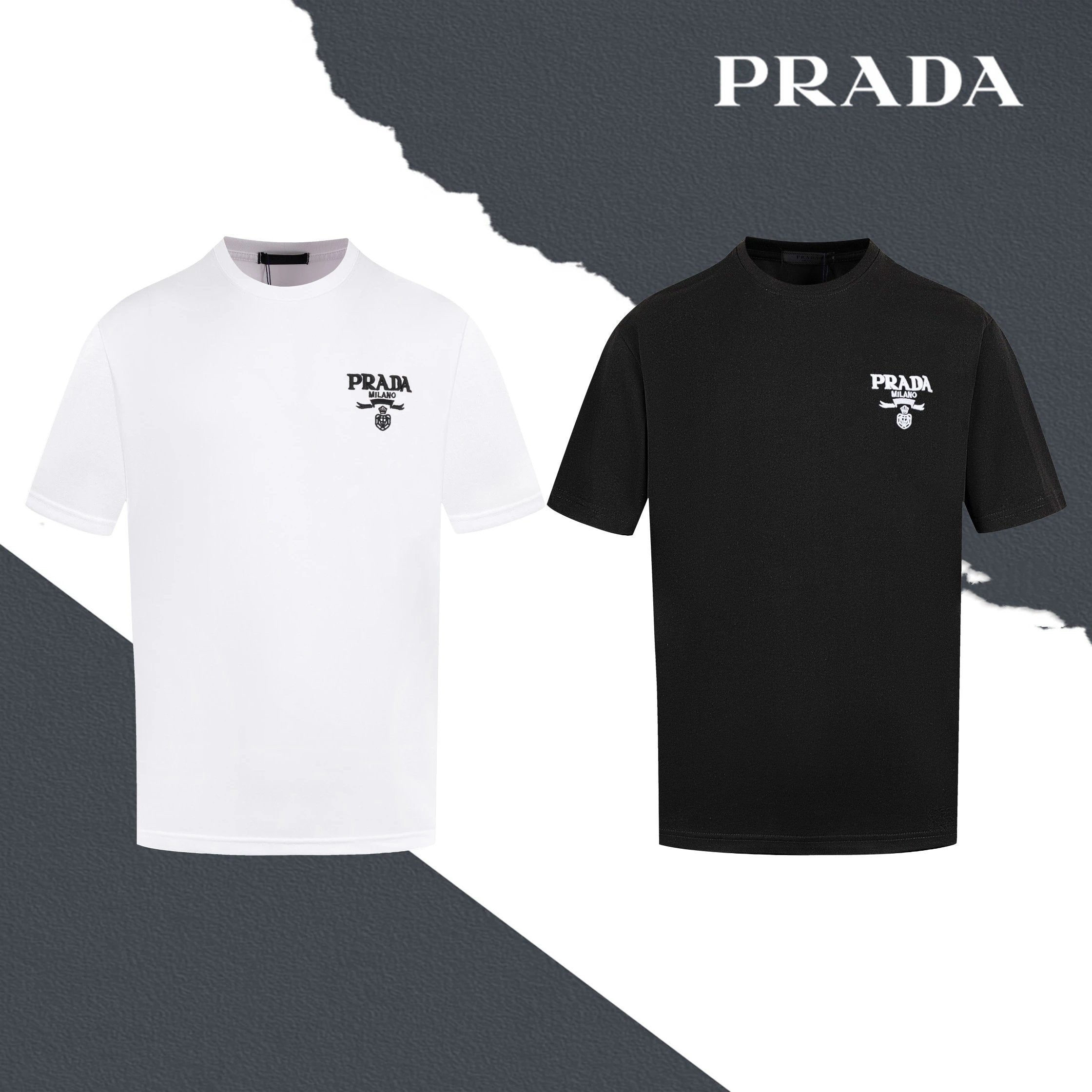 PRADA T-shirt Chest Brand Embroidery logo round Neck Short Sleeve25ss New Pure Cotton Unisex Style T T-shirt OS Loose Fit Base Shirt Half Sleeve T-Shirt Top Half Sleeve