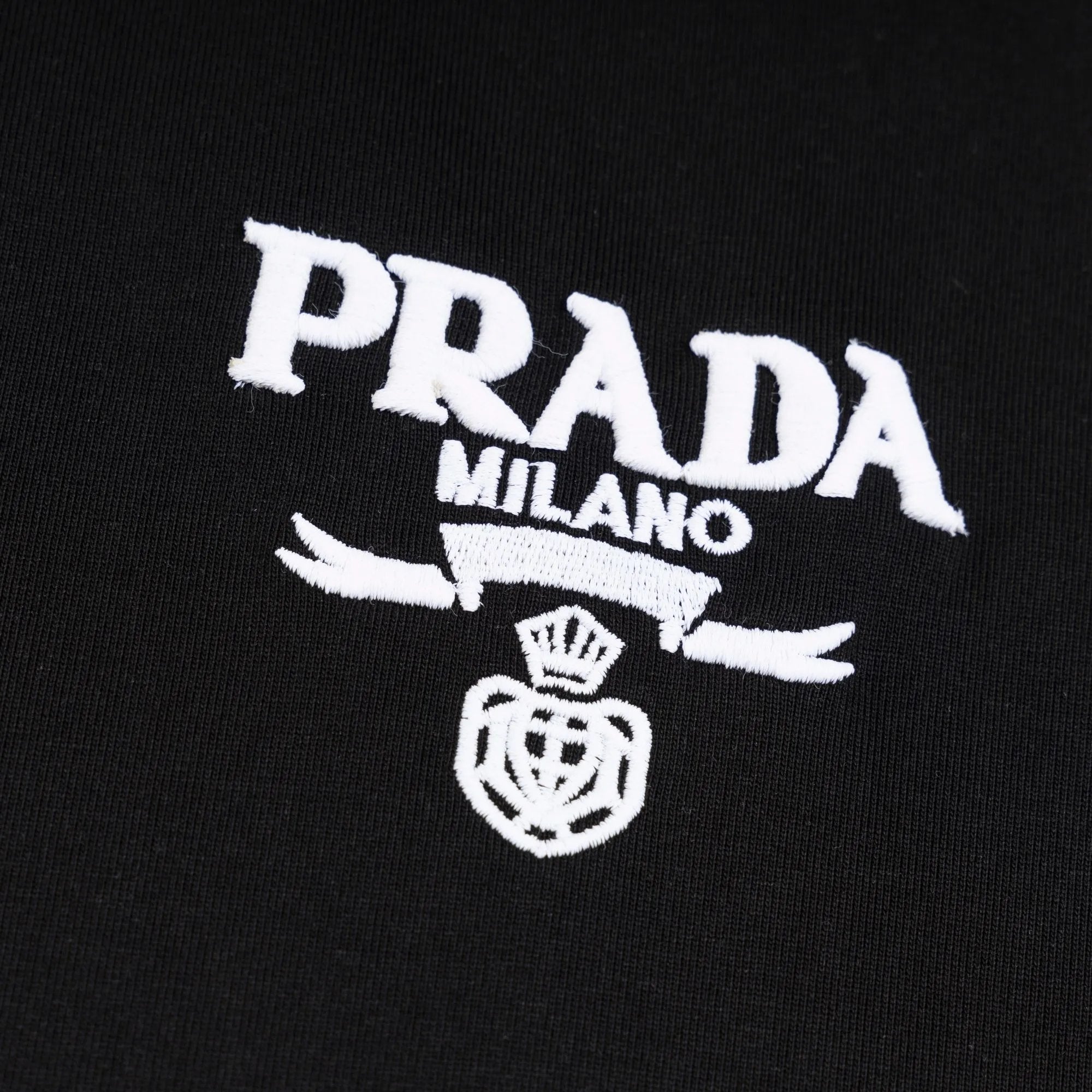 Prada Logo Pattern Embroidered Crew Neck Short Sleeve