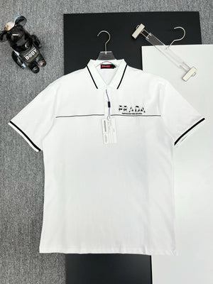 PRADA T-shirt Chest Brand Embroidery logoPOLO Shirt Lapel Short Sleeve25ss New Unisex Summer Short Sleeve OS Loose T Business Half Sleeve Shirt Plus Size T-Shirt