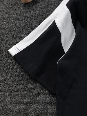 25ss Latest Most ** Black and White Patchwork Color Embroidery Round Neck Short Sleeve, Most ** Quality Counter Original Short Sleeve, ** Craftsmanship Imported Fabric, Counter Unique Design, Using Imported High-end Custom Imported Silk Thread with First-class Feel! Official Website for Sale!