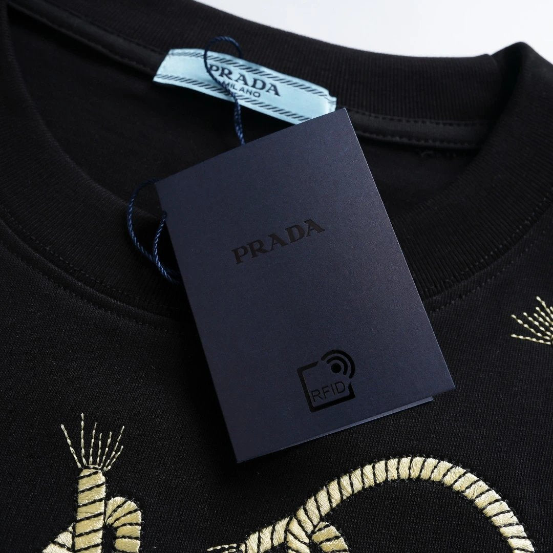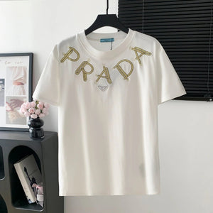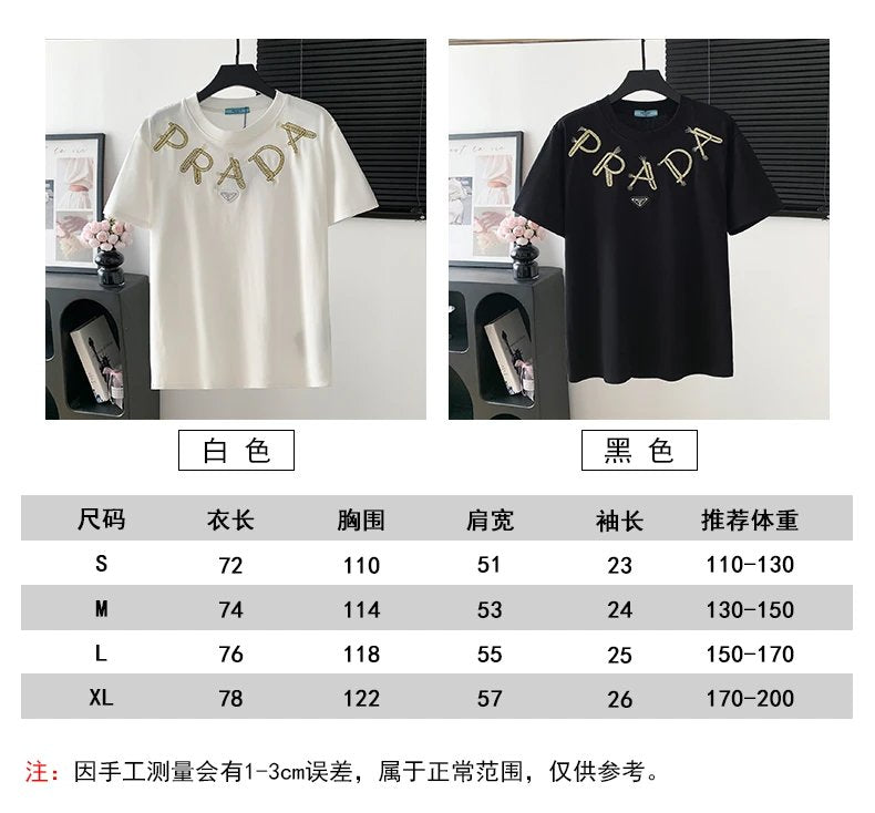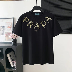 PRADA T-shirt Chest Brand Letter Embroidery logo round Neck Short Sleeve25ss New Pure Cotton Unisex Style T T-shirt OS Loose Fit Base Shirt Half Sleeve T-Shirt Top Half Sleeve