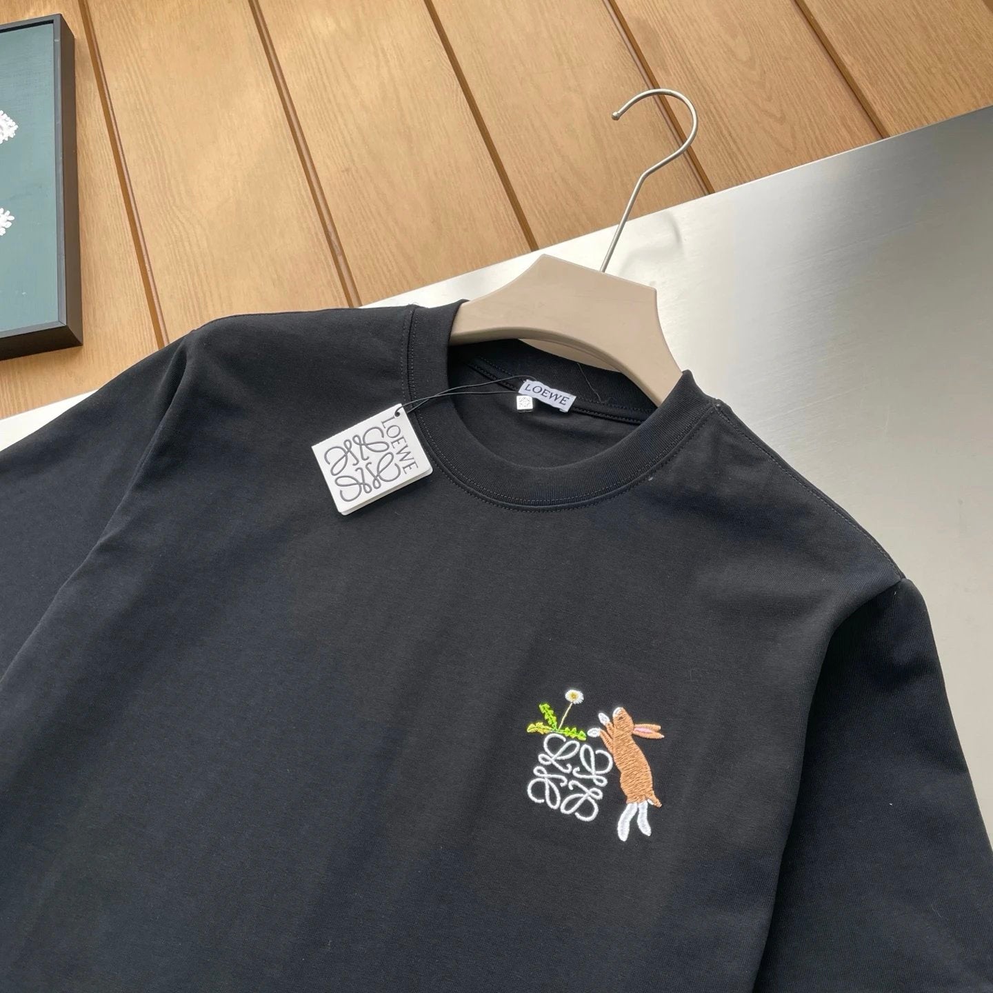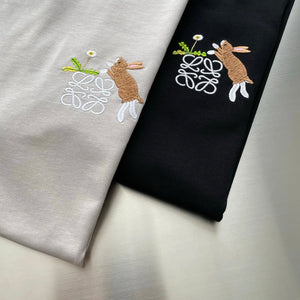 LOEWE T-shirt Chest Bunny Pattern Embroidery logo round Neck Short Sleeve25ss New Pure Cotton Unisex Style T T-shirt OS Loose Fit Base Shirt Top Half Sleeve T-Shirt