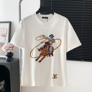 Louis Vuitton LV T-shirt Chest Equestrian Embroidery logo round Neck Short Sleeve25ss New Product T Unisex T-Shirt OS Loose Fit Base Shirt Top Half Sleeve T-Shirt