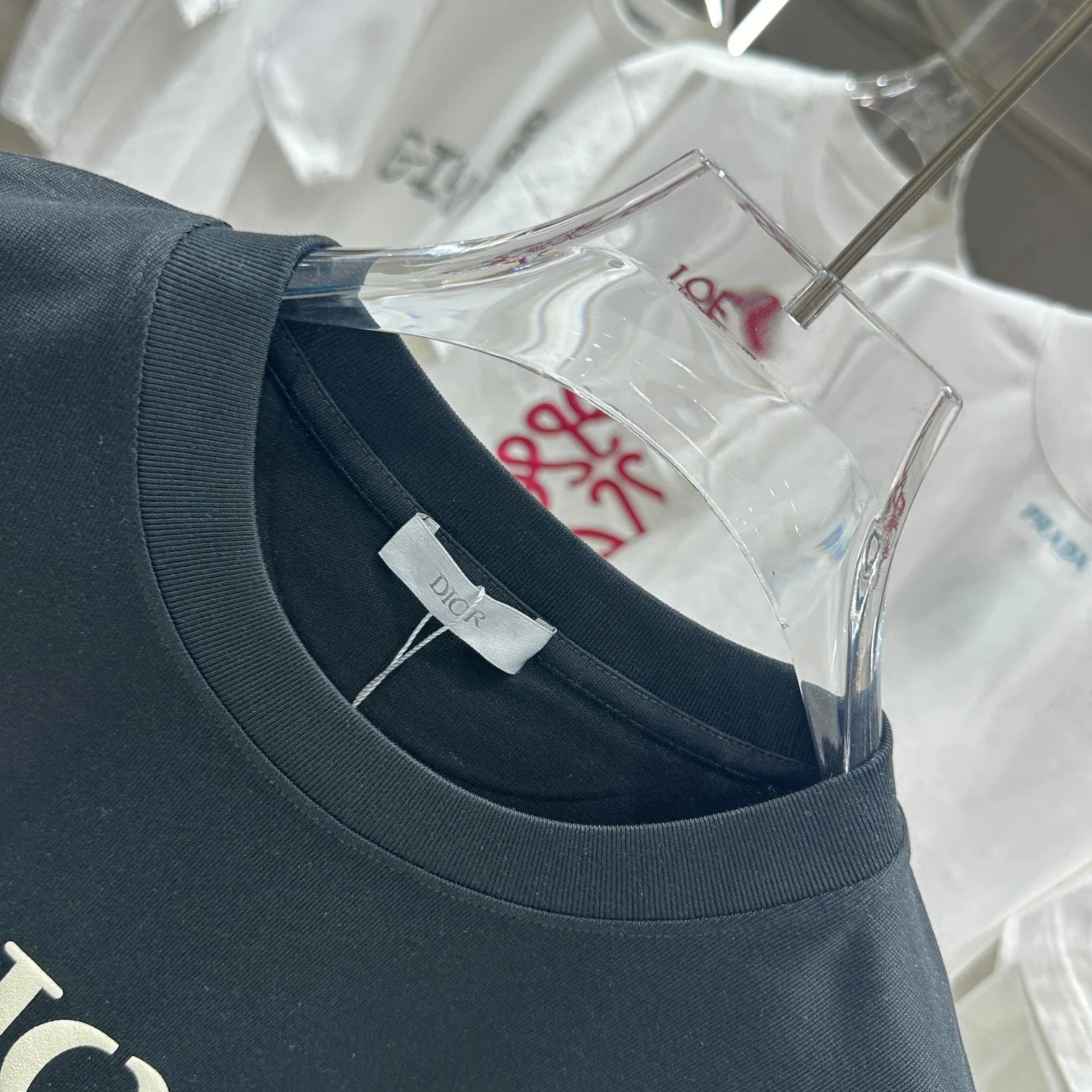 Dior T-shirt Chest Foam Print logo round Neck Short Sleeve25ss New Pure Cotton Unisex Style T T-shirt OS Loose Fit Base Shirt Short Sleeve T-Shirt Top