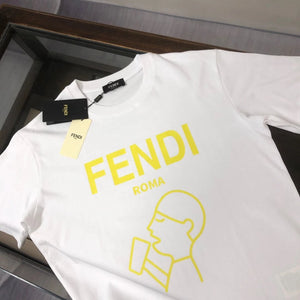 FENDI T-shirt Chest Front Portrait Letter Print logo round Neck Short Sleeve25ss New pure cotton T Unisex T-Shirt OS Drop Shoulder Loose Fit Base Shirt Top T-Shirt Short Sleeve