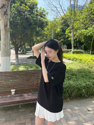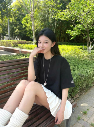 Alo Yoga T-shirt Chest Letter Embroidery logo round Neck Short Sleeve25ss New Pure Cotton Unisex Style T Casual T-Shirt Base Layer Shirt OS Loose Fit Half Sleeve Top Plus Size