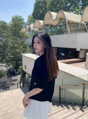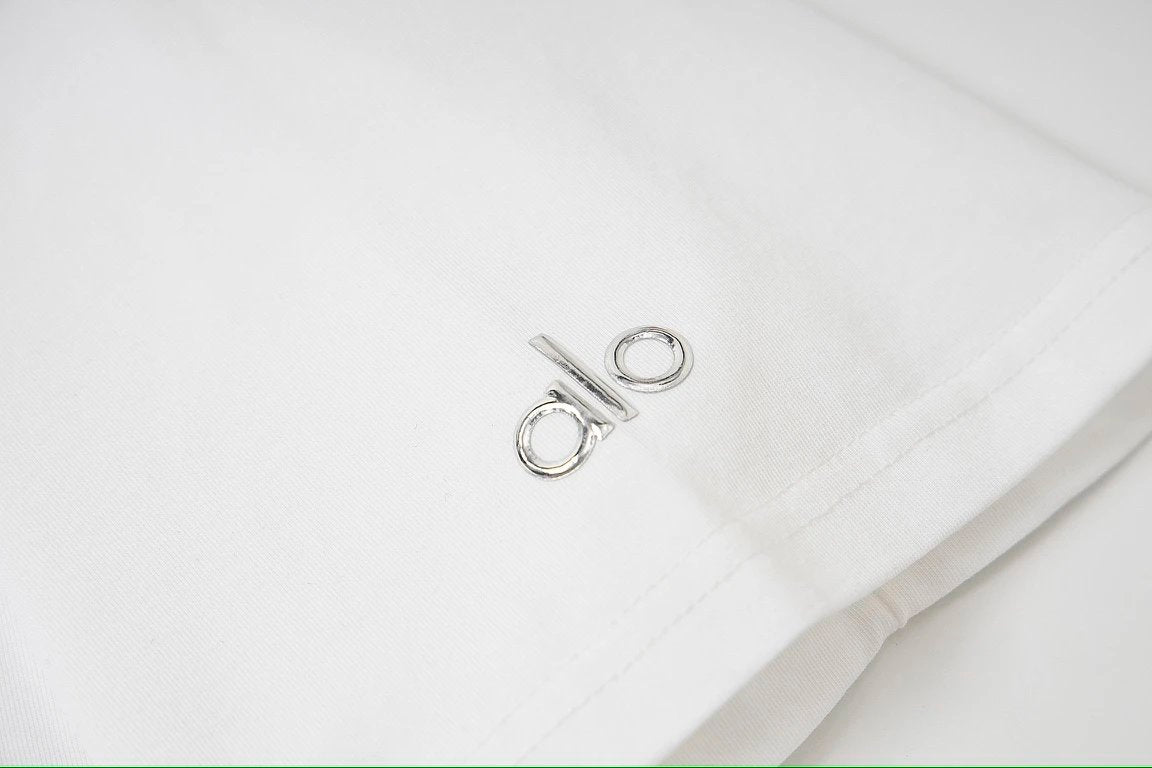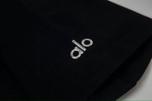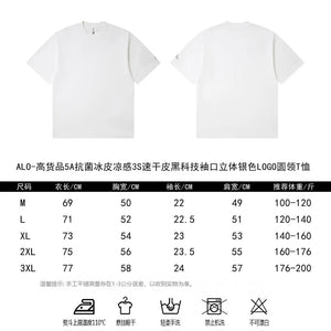 ALO-High-Quality 5A Antibacterial Ice Skin Cool 3S Quick-Dry Black Technology Cuff 3D Silver Logo Crew Neck T-Shirt