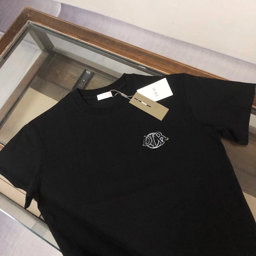 Dior T-shirt Chest Letter Embroidery logo round Neck Short Sleeve25ss New Pure Cotton Unisex Style T Casual T-Shirt Base Layer Shirt OS Loose Fit Half Sleeve Top Plus Size