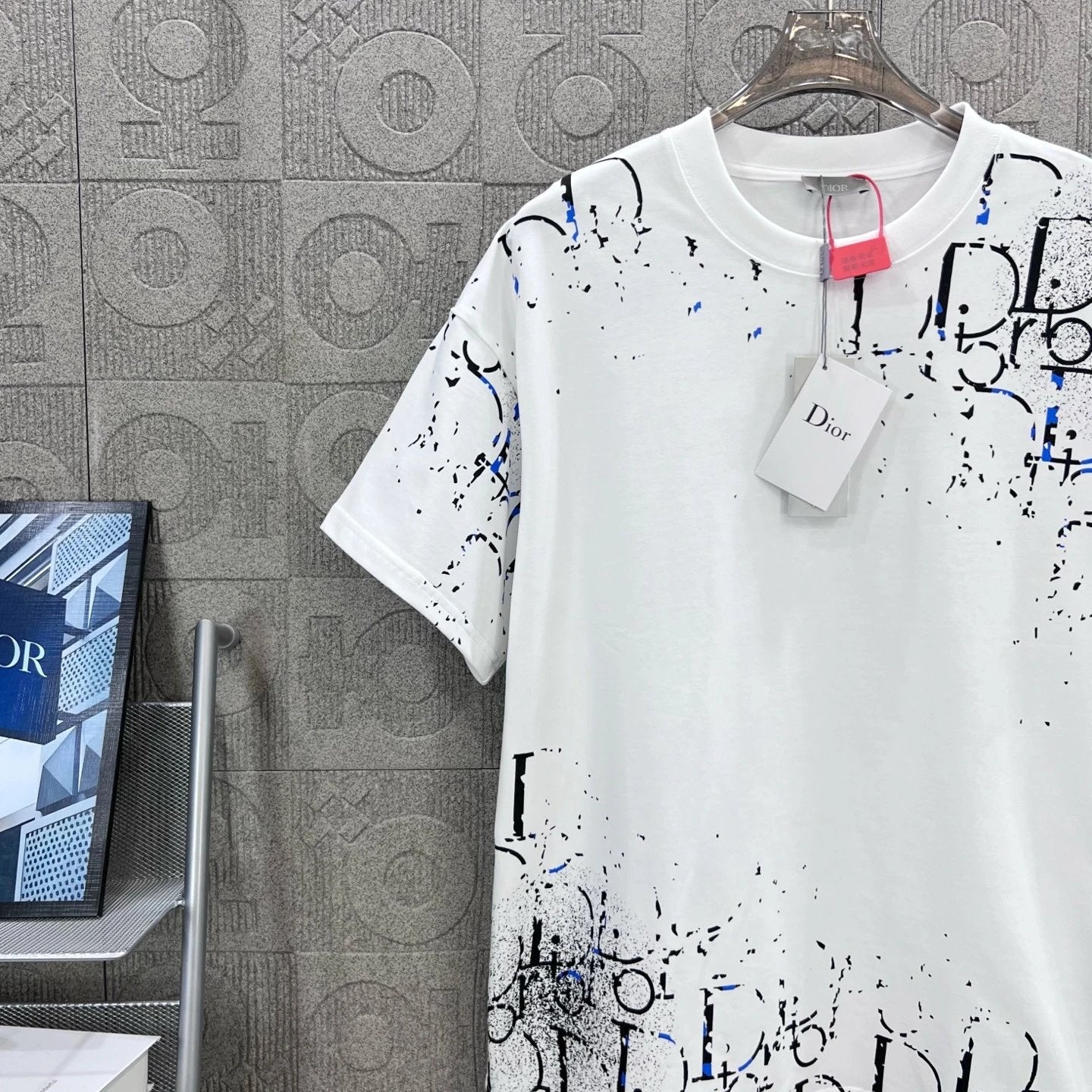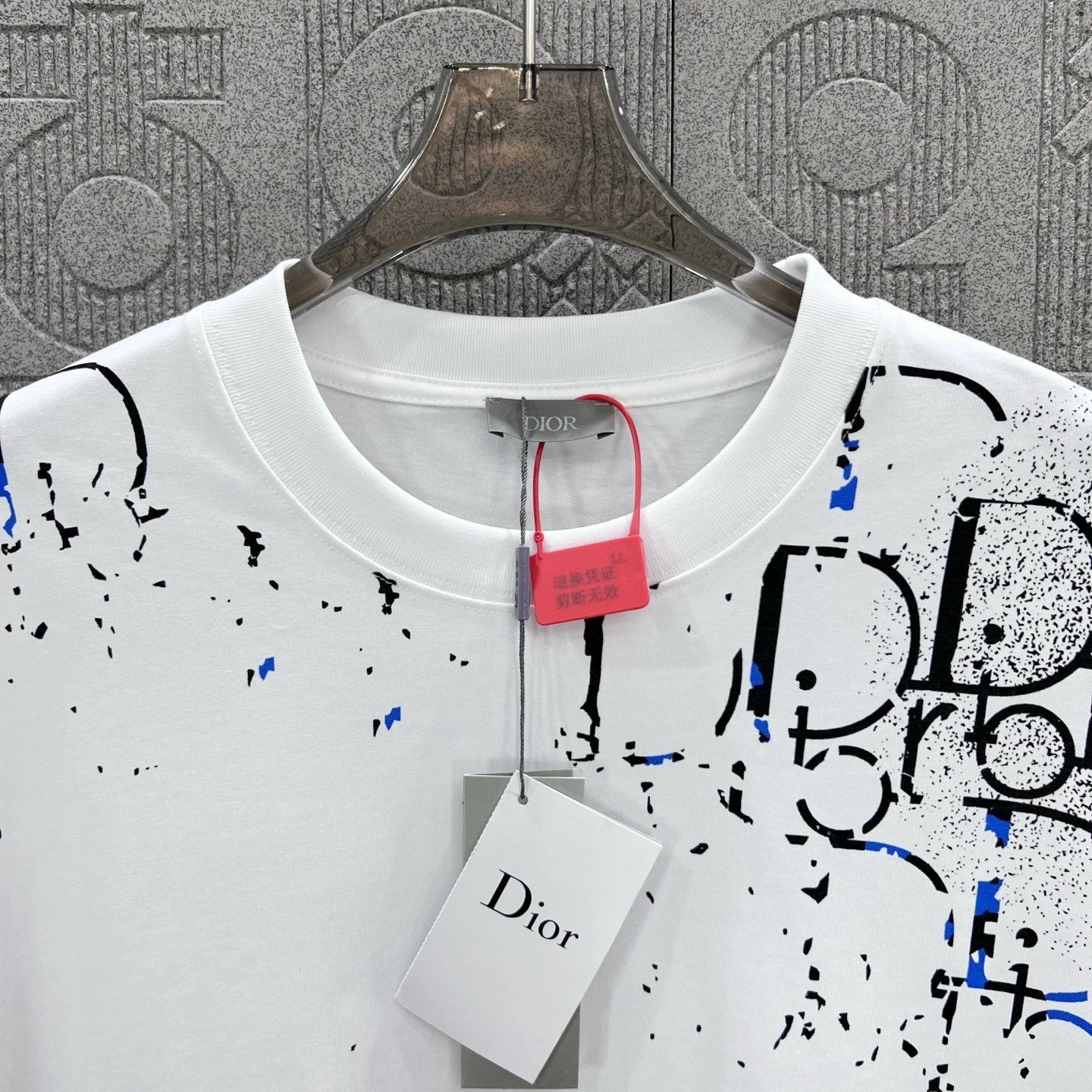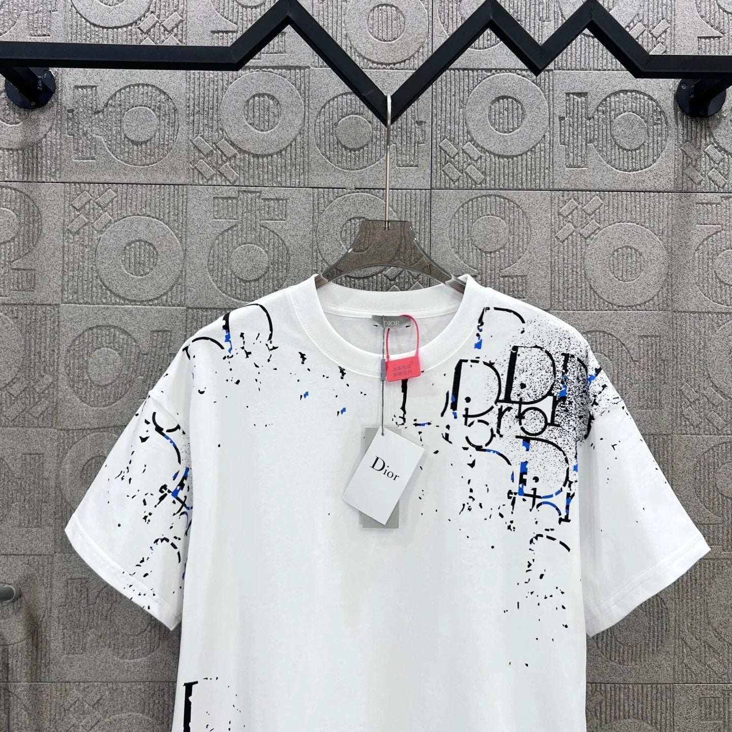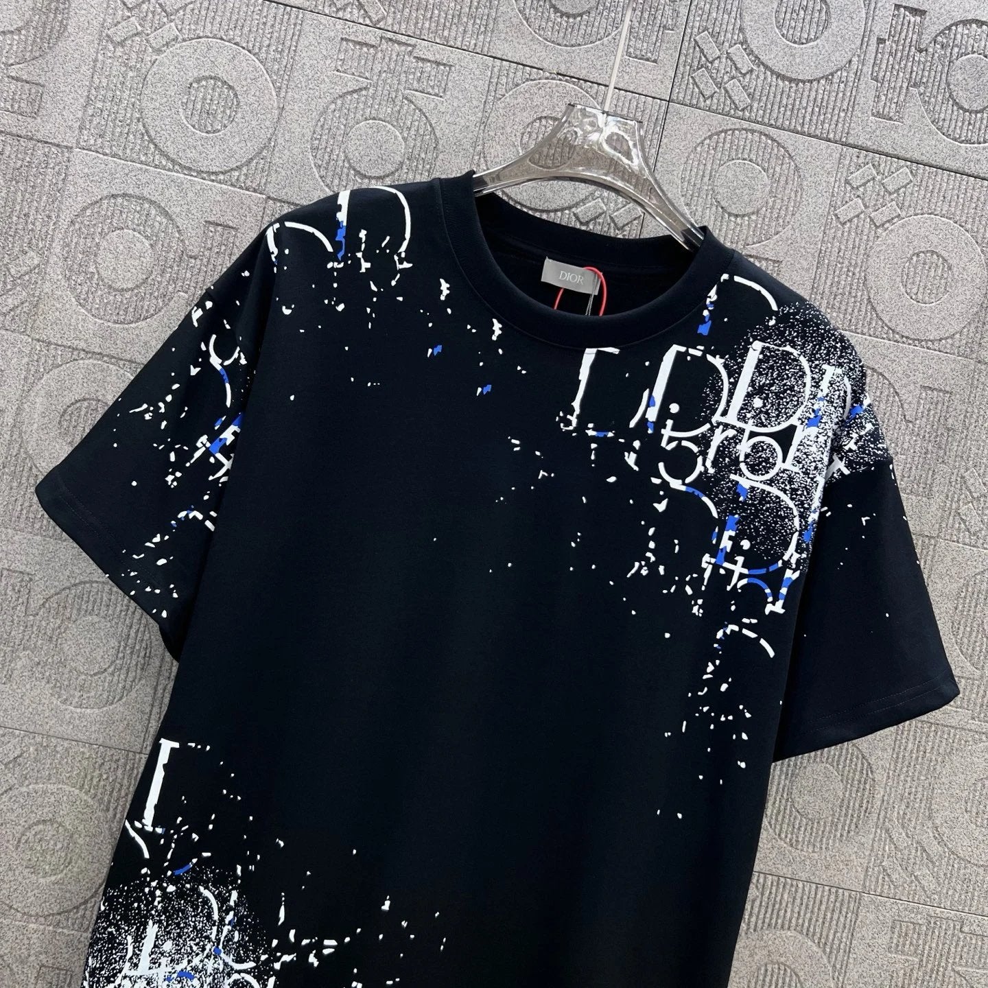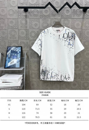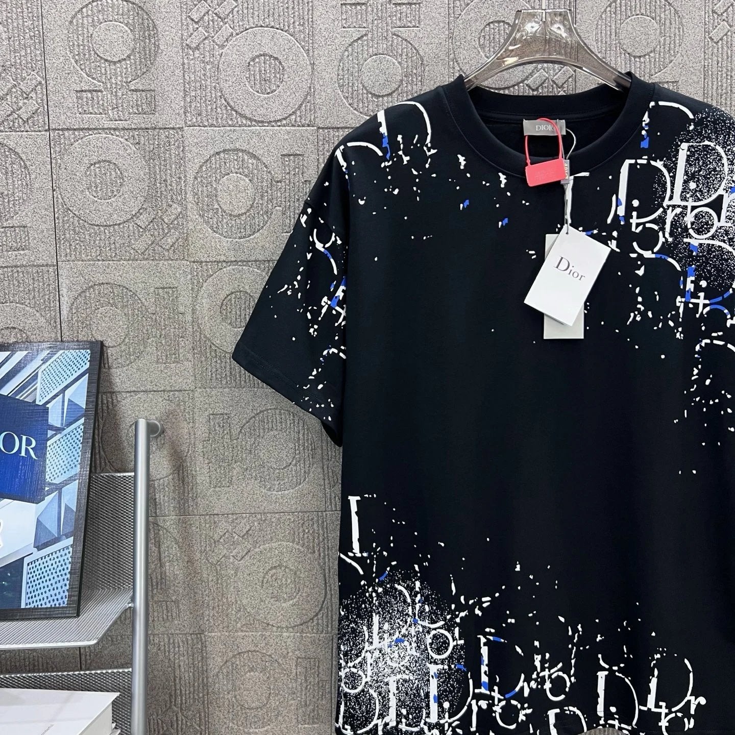 Dior T-shirt Chest Letter Graffiti Ink Splash Print logo round Neck Short Sleeve25ss New Pure Cotton Unisex Style T T-shirt OS Loose Fit Base Shirt Half Sleeve T-Shirt Top Half Sleeve