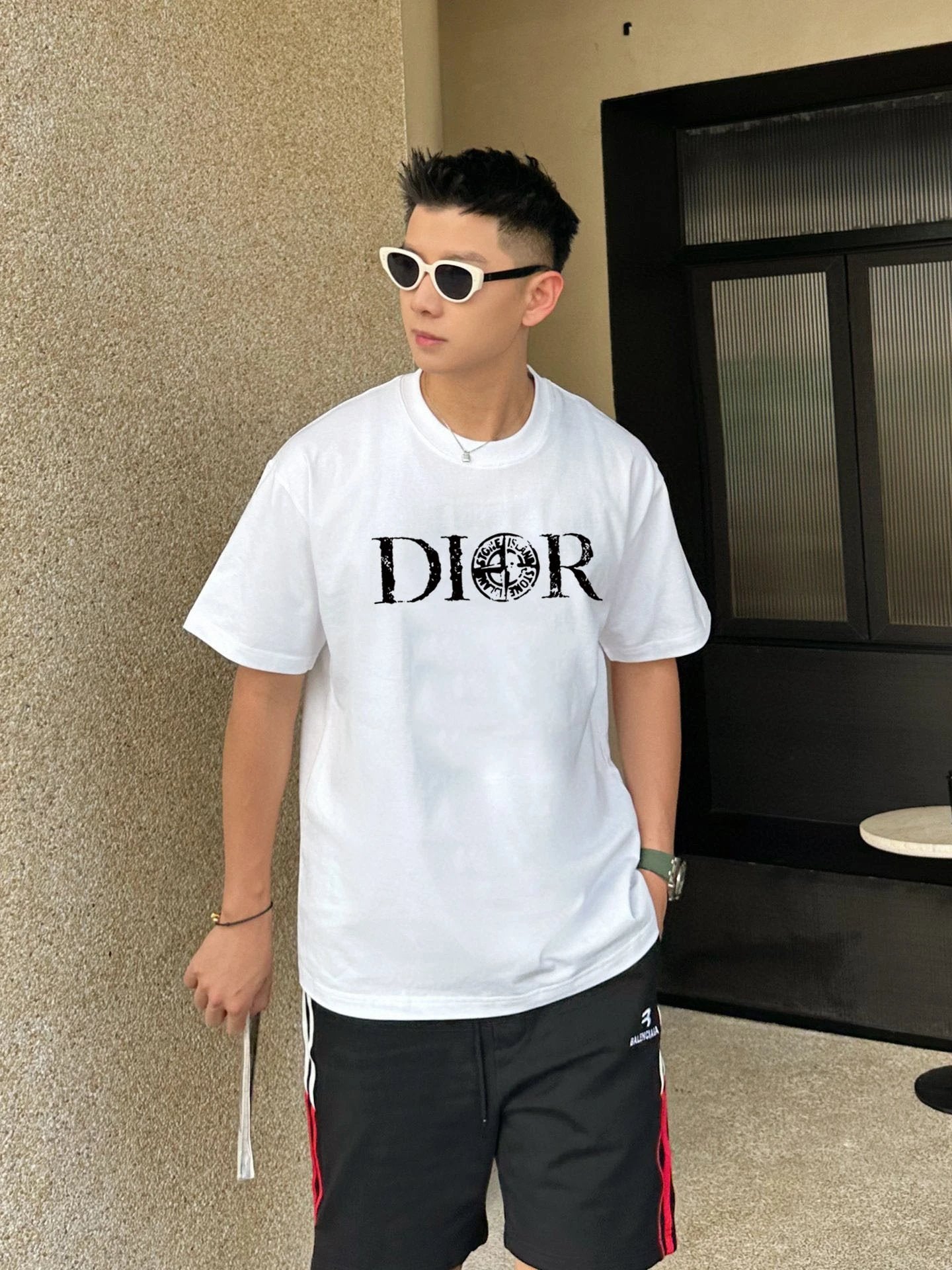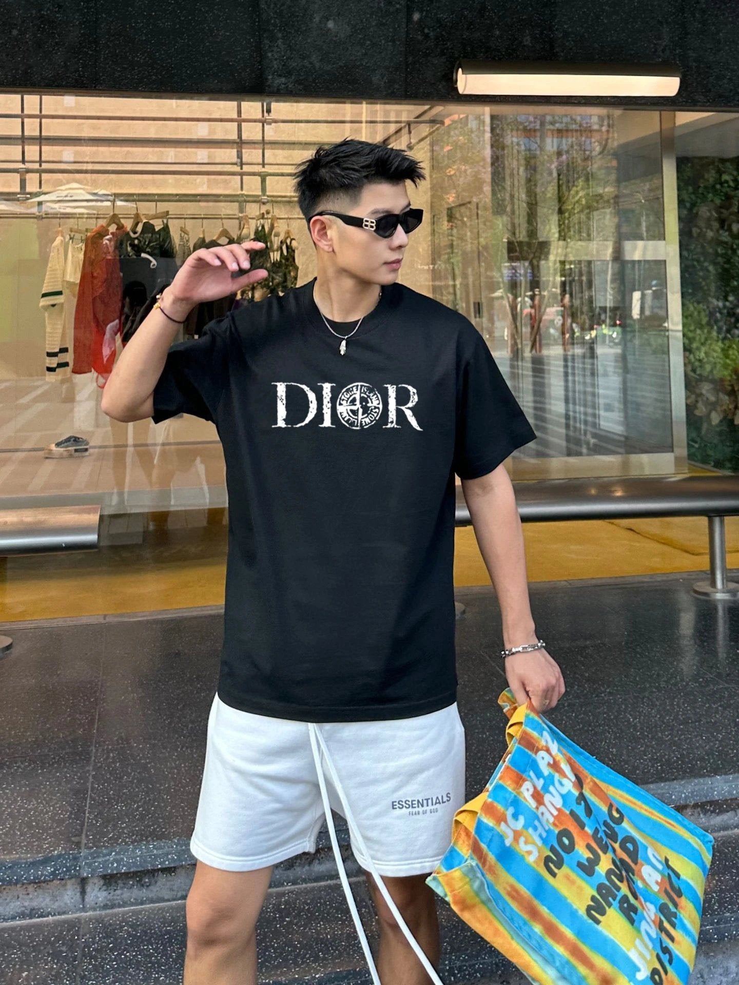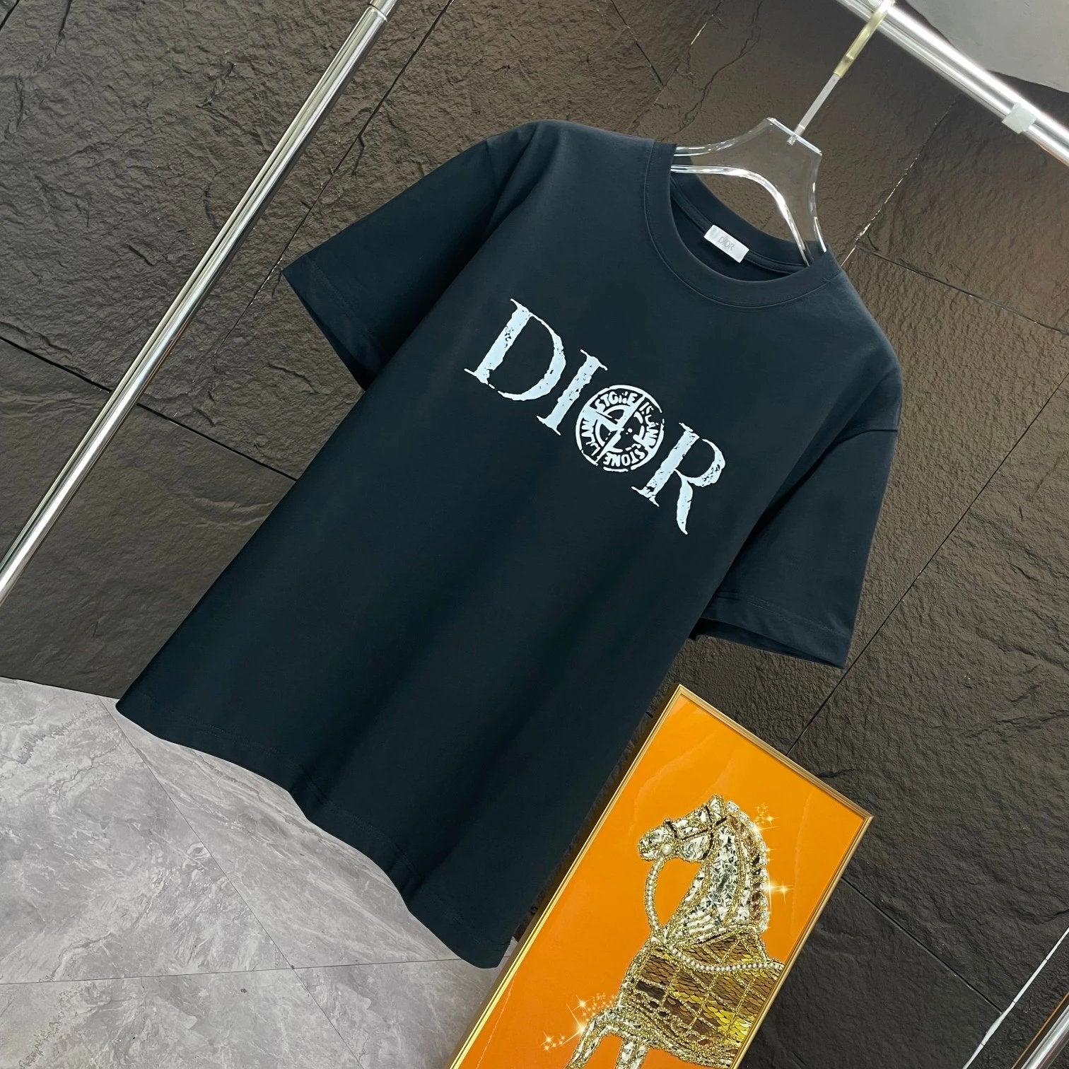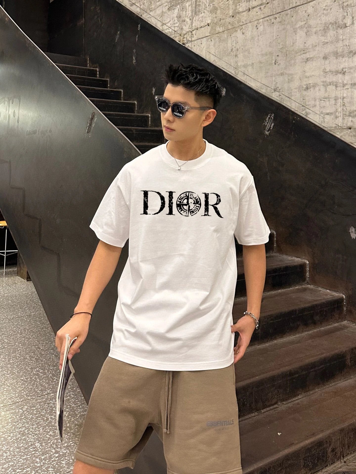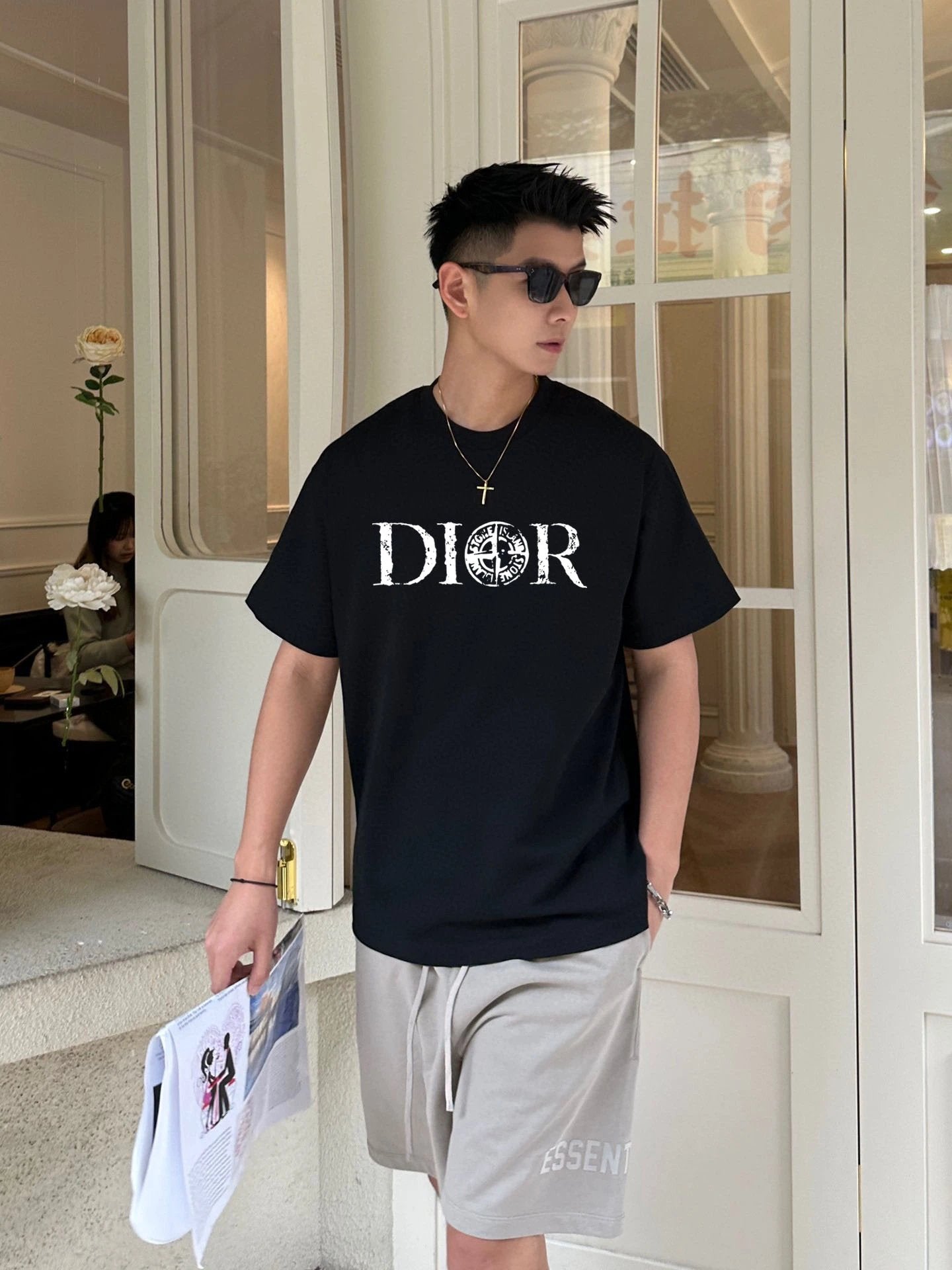 Dior T-shirt Chest Letter Pattern Print logo round Neck Short Sleeve25ss New Pure Cotton Unisex Style T T-shirt OS Loose Fit Base Shirt Half Sleeve T-Shirt Top Half Sleeve