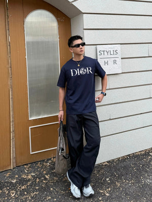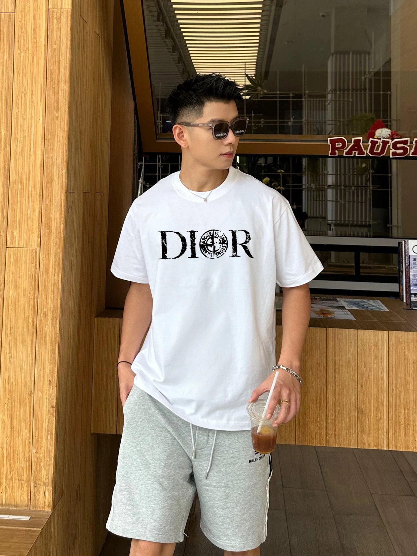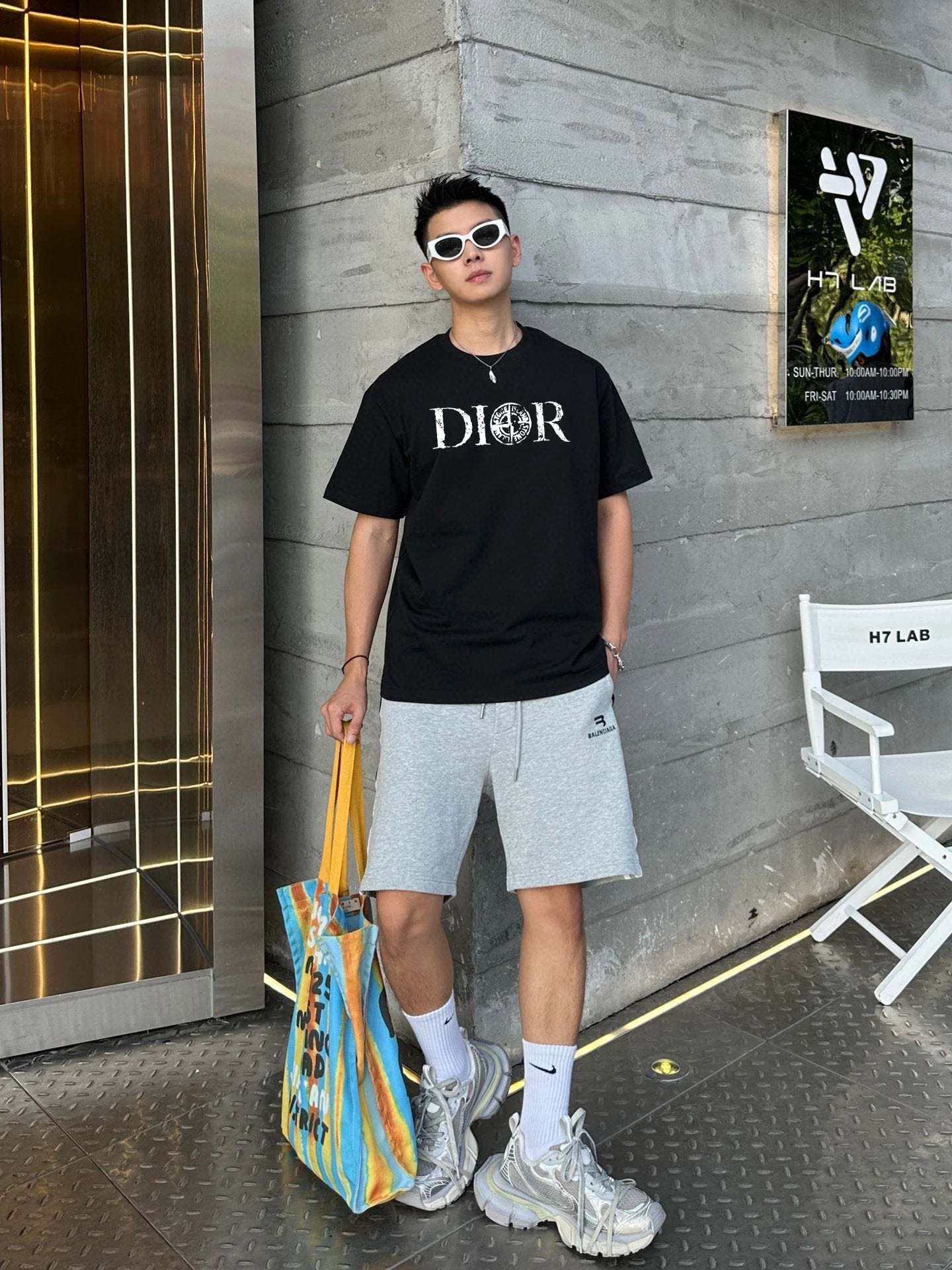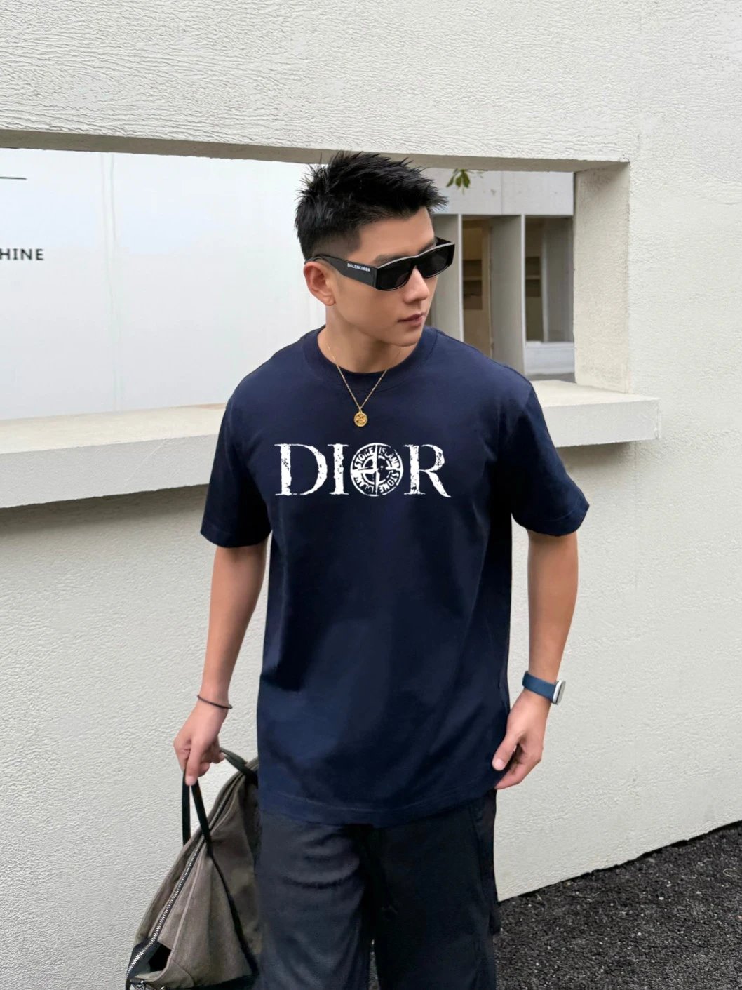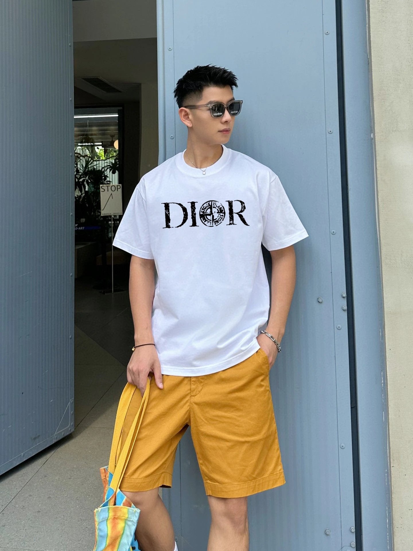Dior T-shirt Chest Letter Pattern Print logo round Neck Short Sleeve25ss New Pure Cotton Unisex Style T T-shirt OS Loose Fit Base Shirt Half Sleeve T-Shirt Top Half Sleeve