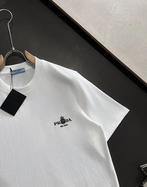 PRADA T-shirt Chest Letter Pattern Print logo round Neck Short Sleeve25ss New Pure Cotton Unisex Style T T-shirt OS Loose Fit Base Shirt Top Half Sleeve T-Shirt