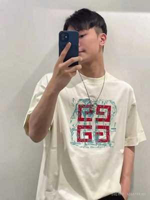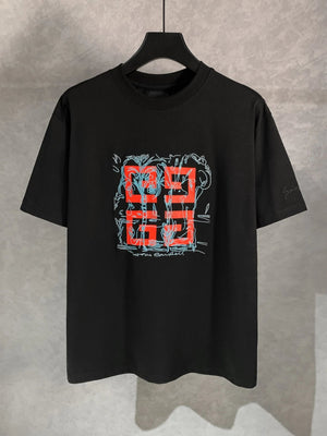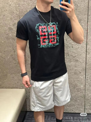 Givenchy T-shirt Chest Letter Print Pattern Embroidery logo round Neck Short Sleeve25ss New Pure Cotton Unisex Style T Casual T-Shirt Base Layer Shirt OS Loose Fit Half Sleeve Top Plus Size