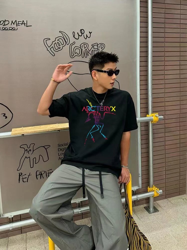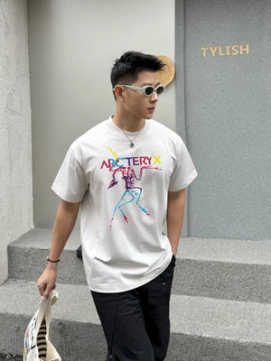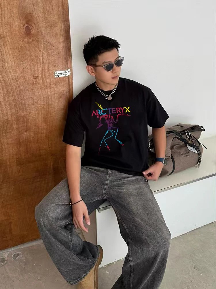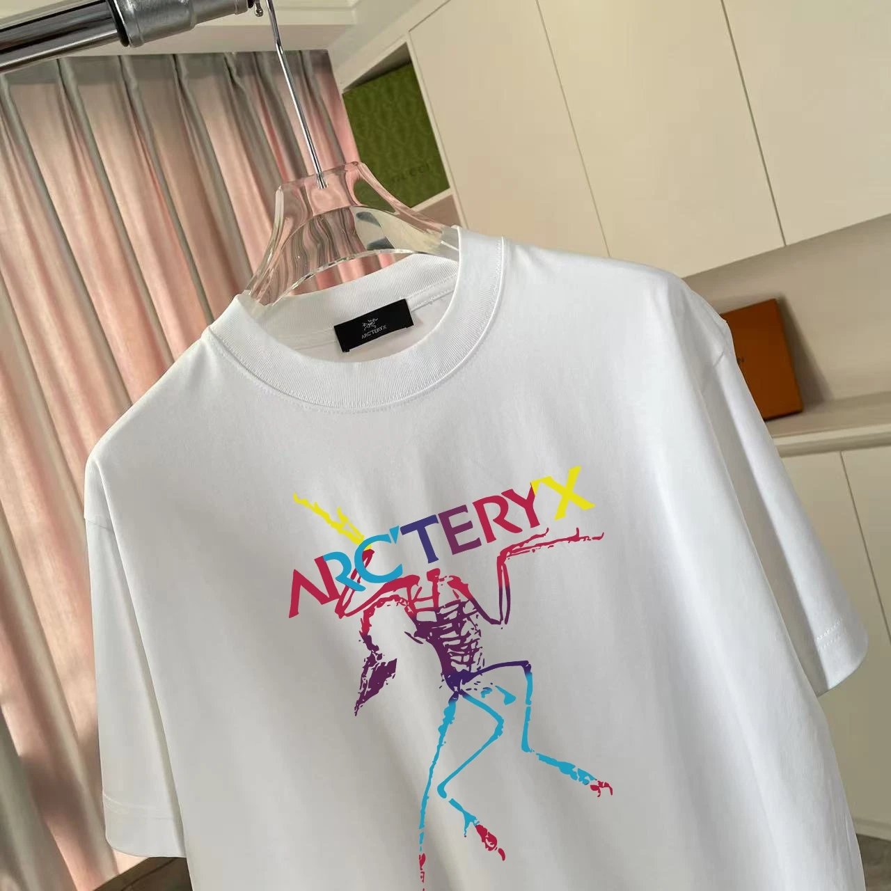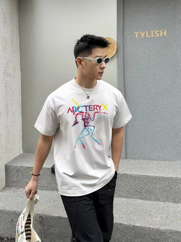 Arc'teryx T-shirt Chest Letter Skeleton Pattern Print logo round Neck Short Sleeve25ss New pure cotton T Unisex T-Shirt OS Drop Shoulder Loose Fit Base Shirt Top T-Shirt Short Sleeve