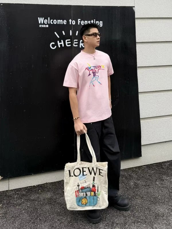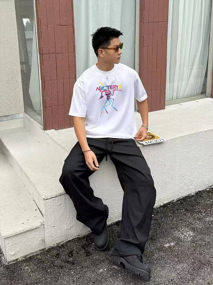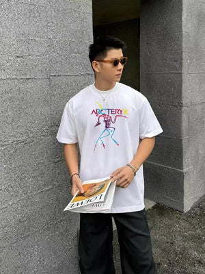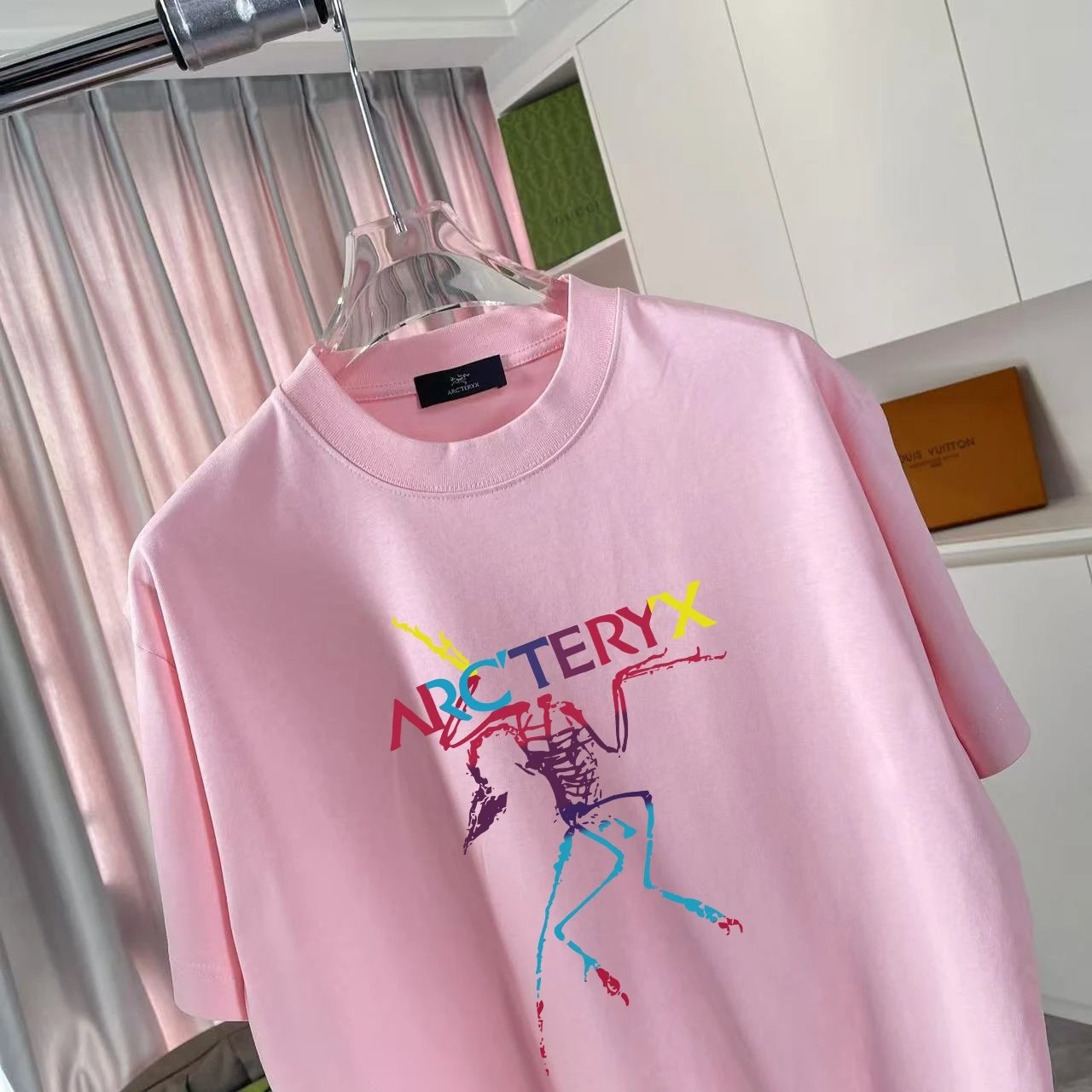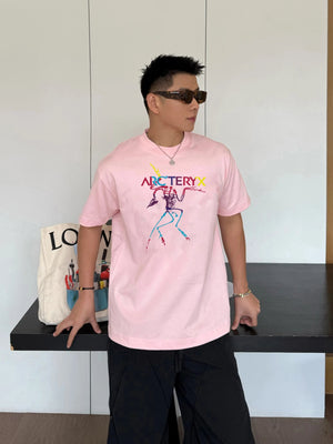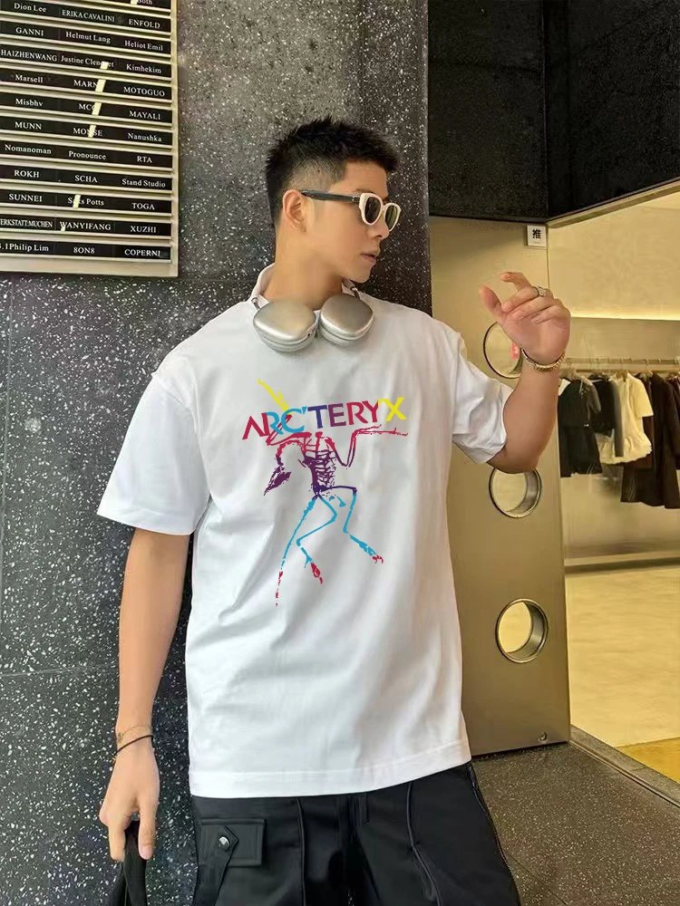 Arc'teryx T-shirt Chest Letter Skeleton Pattern Print logo round Neck Short Sleeve25ss New pure cotton T Unisex T-Shirt OS Drop Shoulder Loose Fit Base Shirt Top T-Shirt Short Sleeve