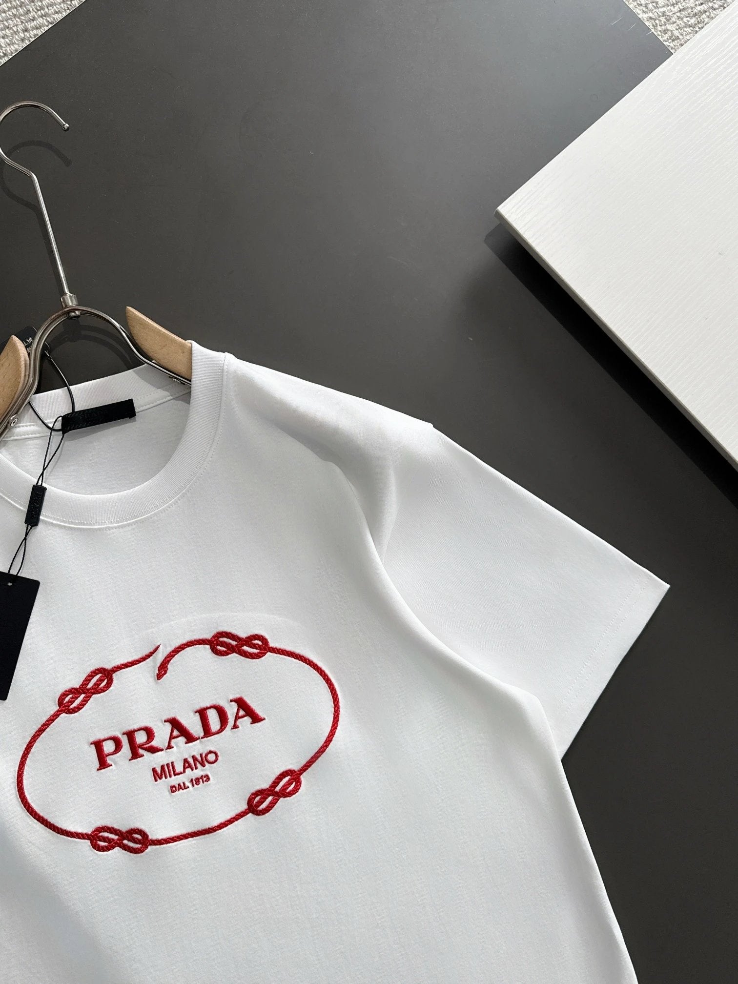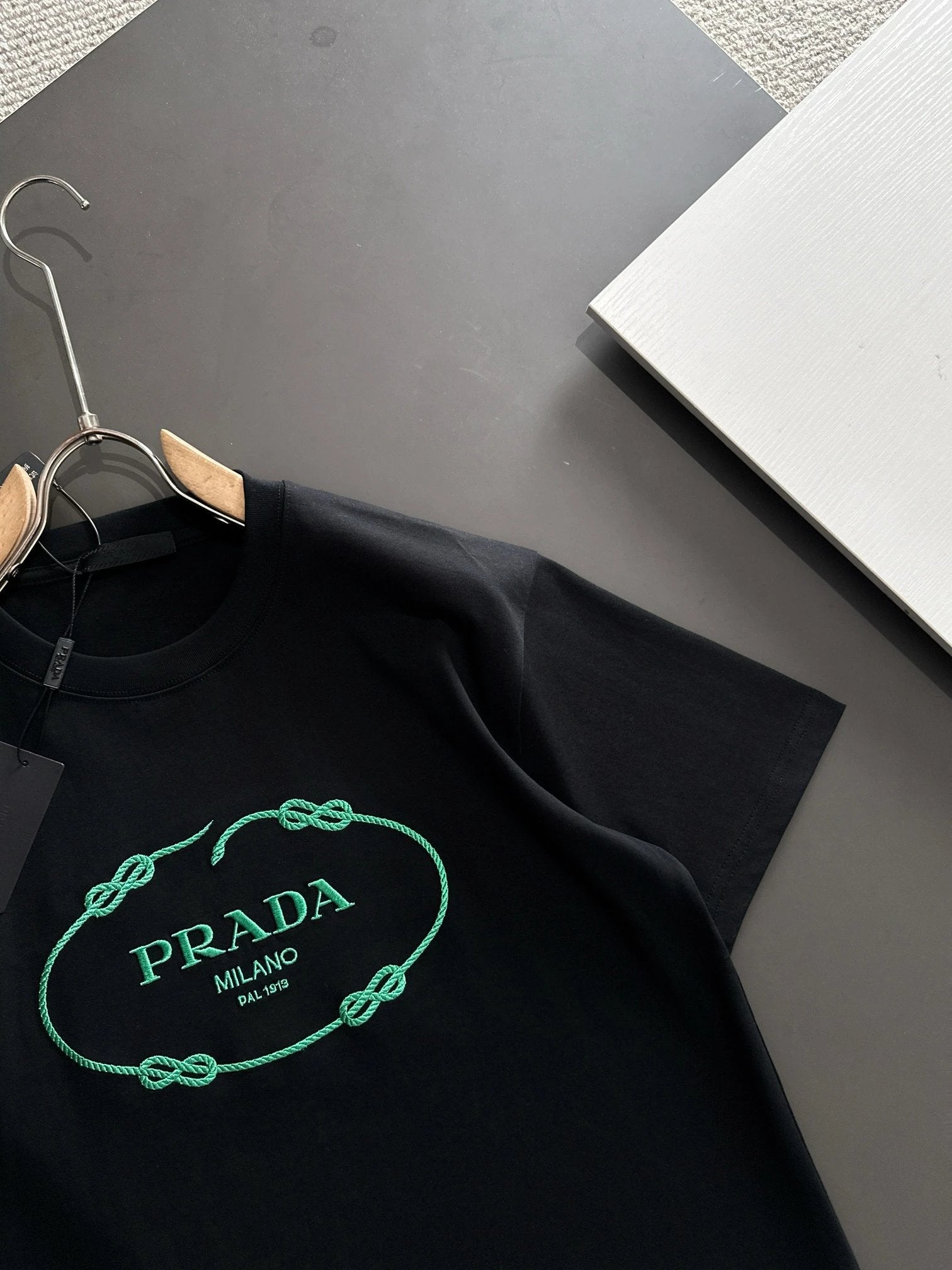 PRADA T-shirt Chest Letter Snake Pattern Embroidery logo round Neck Short Sleeve25ss New pure cotton T Unisex T-Shirt OS Loose Fit Base Shirt Top Half Sleeve T-Shirt