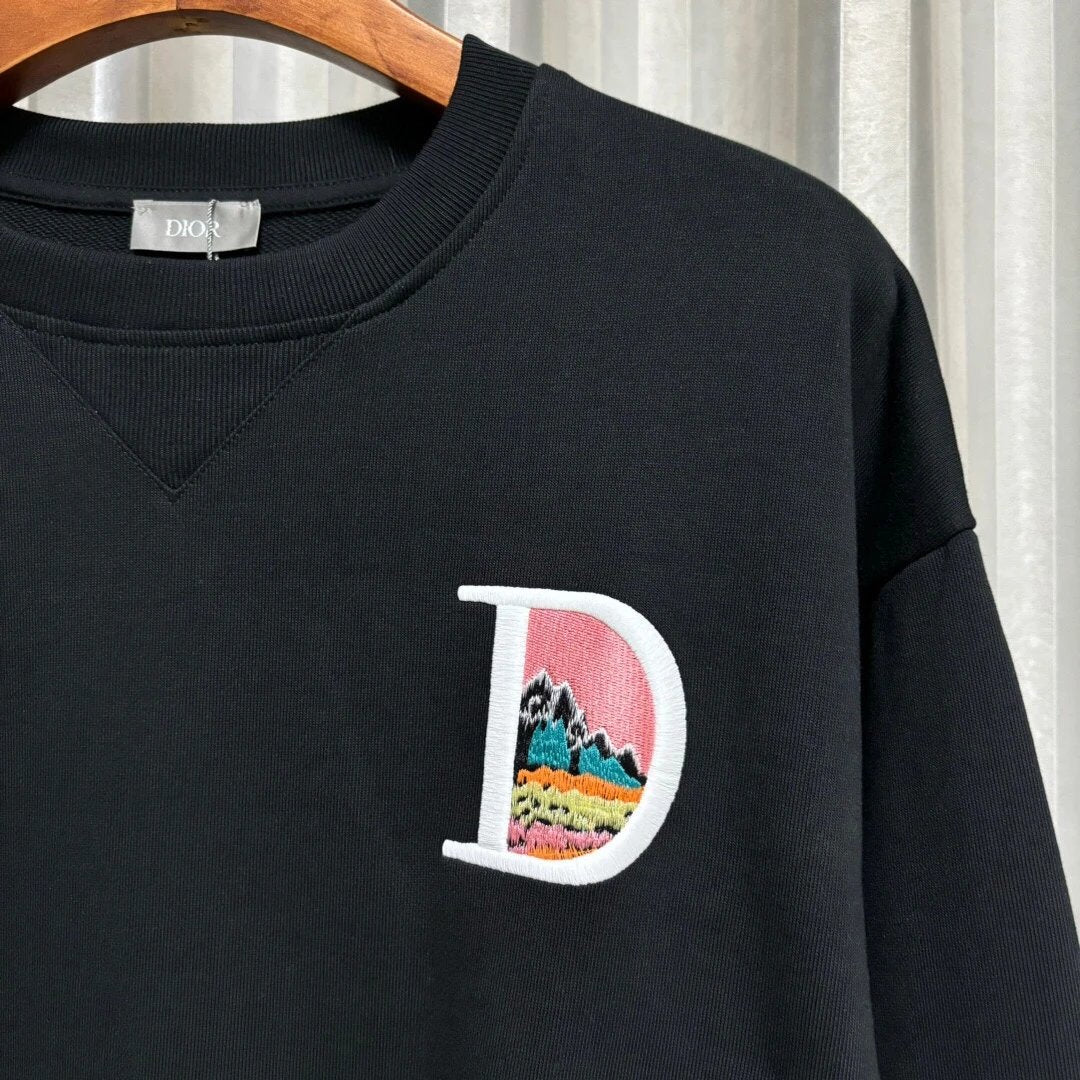 Dior Hoodie Chest Lettering logo Embroidered Crewneck Sweatshirt Long Sleeve Base Shirt Outerwear Trendy Unisex Sports Casual Loose Fit Versatile Autumn Winter New Arrival