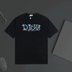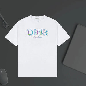 Dior T-shirt Chest Letters with Fresh Flower Embellishments Print logo round Neck Short Sleeve25ss New Pure Cotton Unisex Style T T-shirt OS Loose Fit Base Shirt Top Half Sleeve T-Shirt