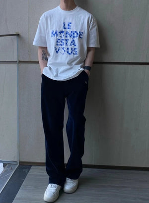 **Version V Chest Mosaic Screen Printing Overlapping Round Neck Short Sleeve Pure Cotton Unisex T-Shirt Base Shirt Loose Fit OS Pre-Purchase Instructions