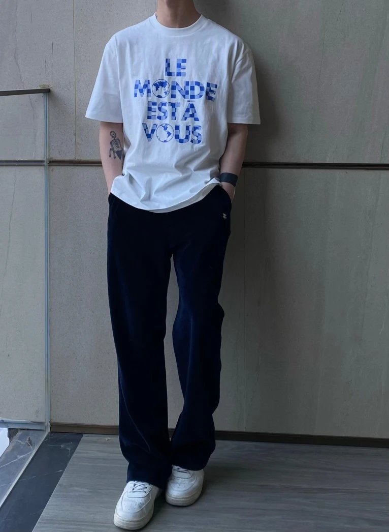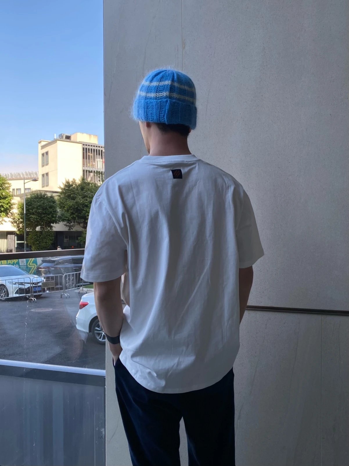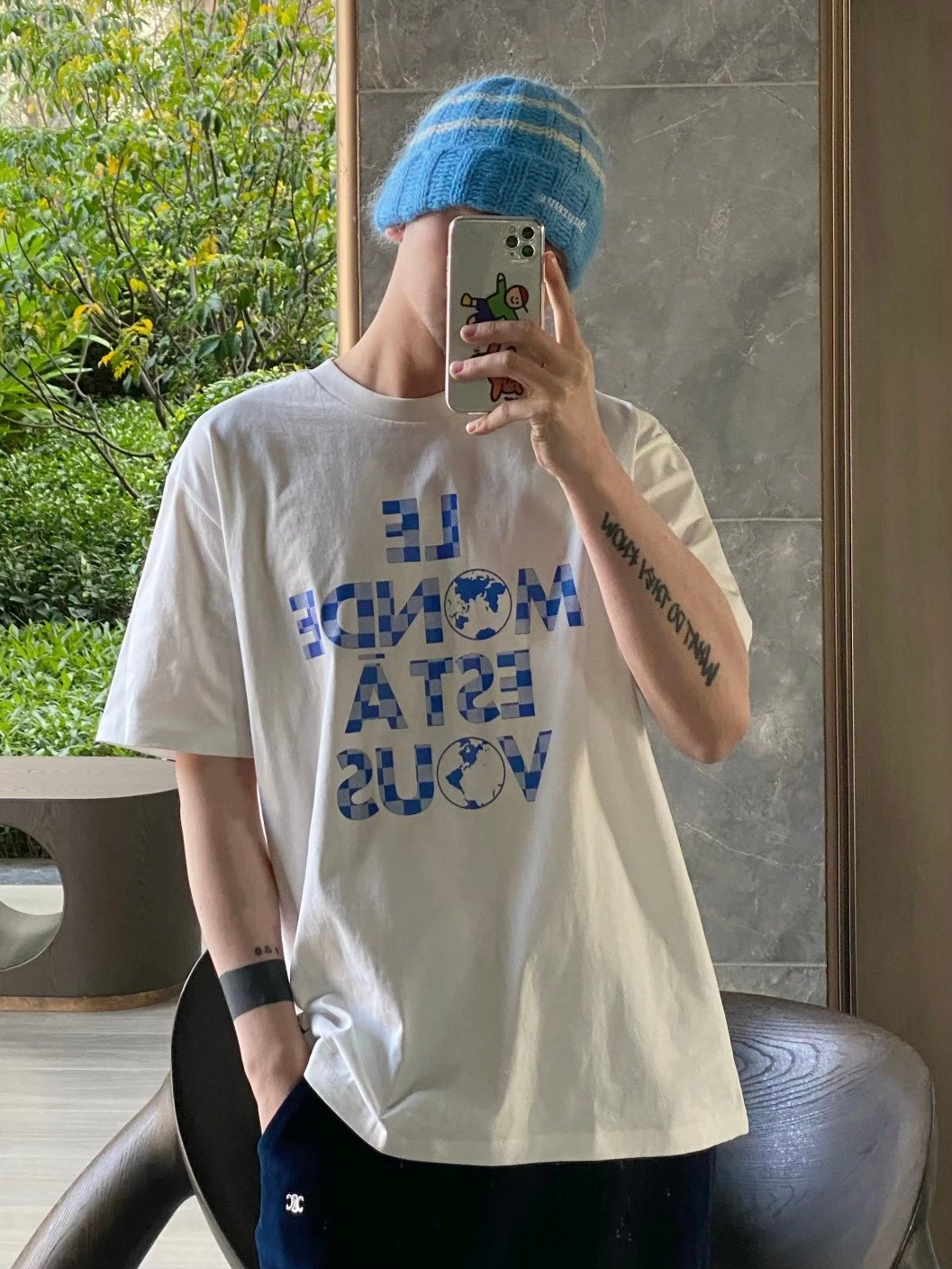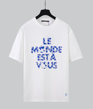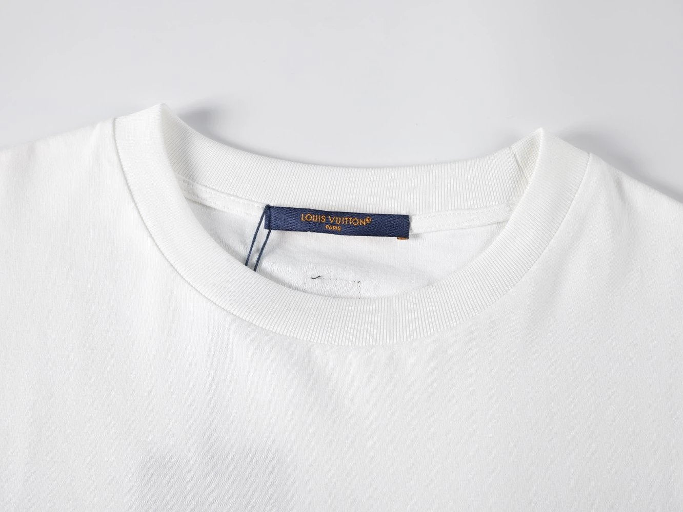 Louis Vuitton LV T-shirt Chest Mosaic Screen Print Overlapping Round Neck Short Sleeve Pure Cotton Unisex T T-shirt Base Shirt Tee Shirt OS Loose design