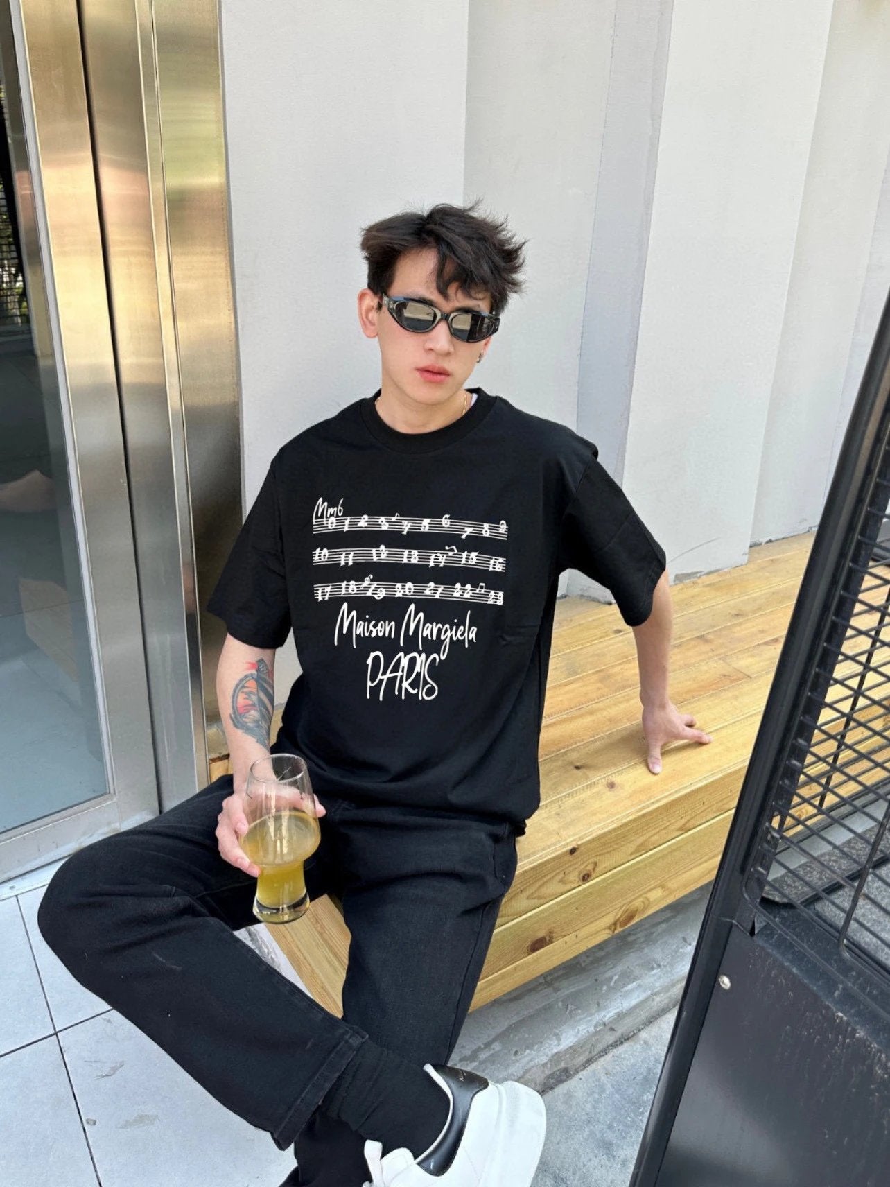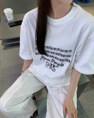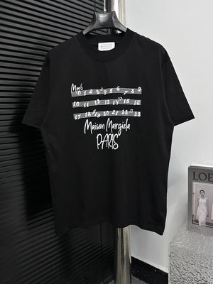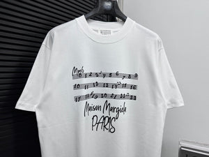Maison Margiela T-shirt Chest Music Note Letter Print logo round Neck Short Sleeve25ss New pure cotton T Unisex T-Shirt OS Loose Fit Base Shirt Top Half Sleeve T-Shirt